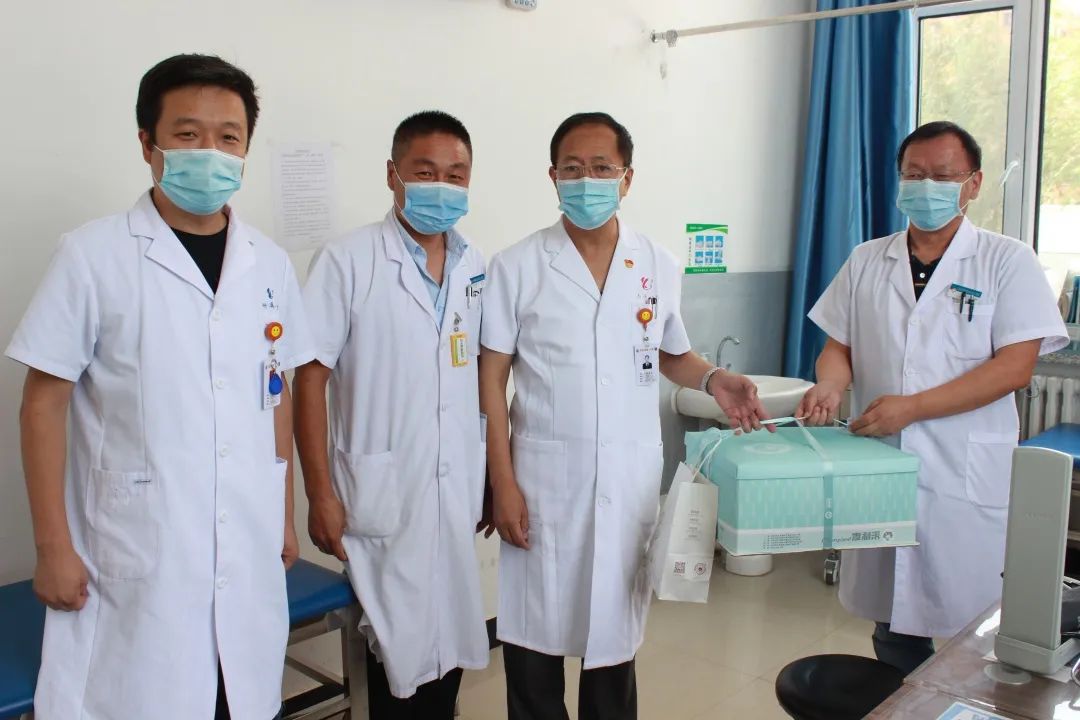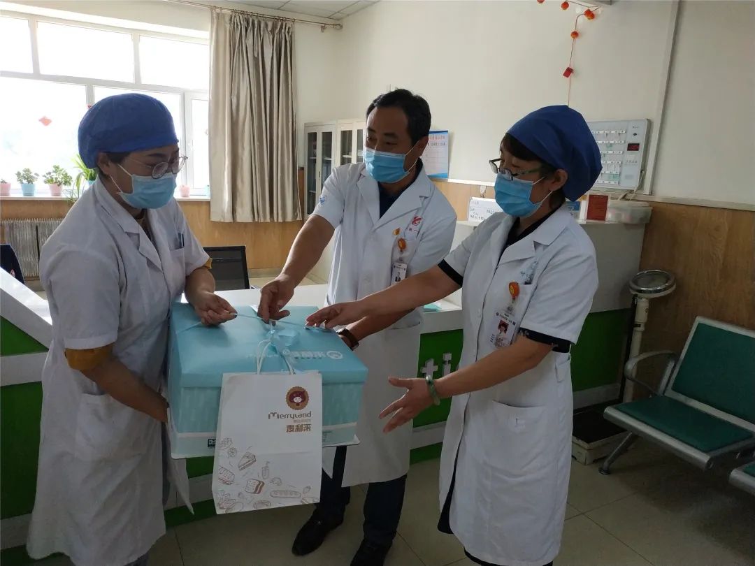 在梅里斯分院,党委书记张忠太将蛋糕分别送到内科、外科、妇产科医生手中。张书记表示,自总院与梅里斯分院实施一体化管理以来,分院各项工作取得的长足的进步,总院与分院亲如一家,下一步,总院将加大对分院的支持力度,从设备设施到医疗专家,真正将医疗服务水平提升上去,服务达乡百姓。
