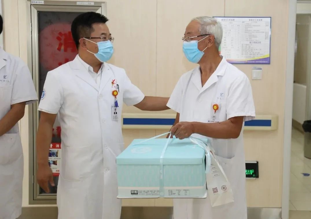 在东西院区门诊,党委书记张忠太、院长李忠原分别慰问申明家、张彦、栾宝芳等老专家,为他们送去蛋糕,向他们致以节日的问候和崇高的敬意,同时叮嘱他们一定要注意身体健康。
