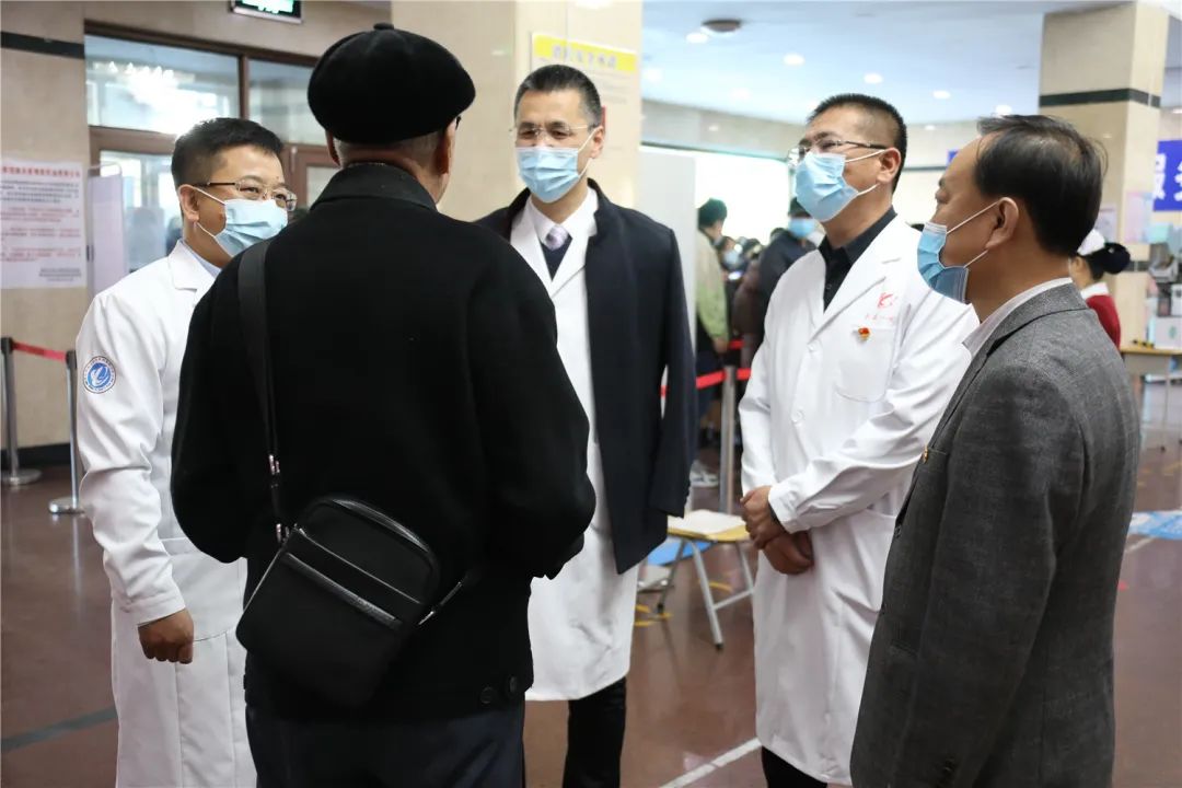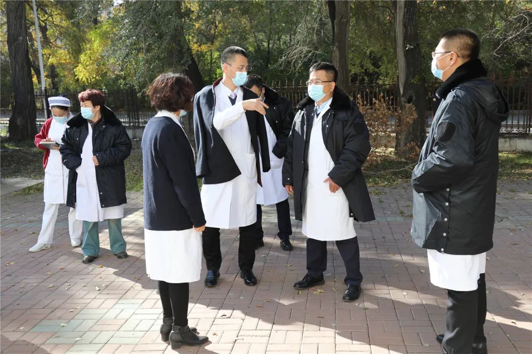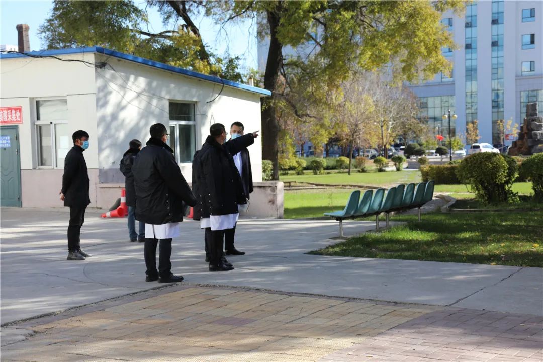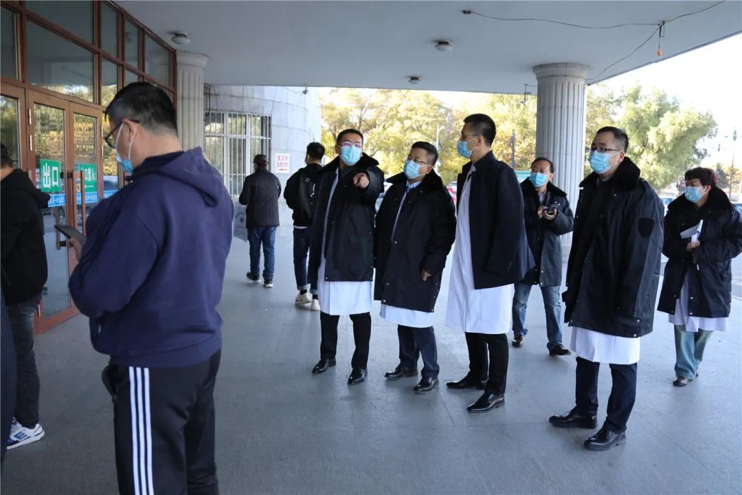 为贯彻落实《开展秋冬季新冠肺炎疫情风险排查工作的通知》(黑疫指办发〔2020〕235号)文件精神,有效防范疫情输入,杜绝医院感染发生,做好现阶段常态化疫情防控工作,10月14日,我院新一届领导班子在党委书记张可勇、院长党委副书记李忠原的带领下,副院长艾立辉、刘增良、刘忠锦及医务科、护理部、感控科等相关职能科室负责人深入临床一线走流程。院领导深入门急诊、内外科病房楼、发热门诊、西院区等地进行调研。