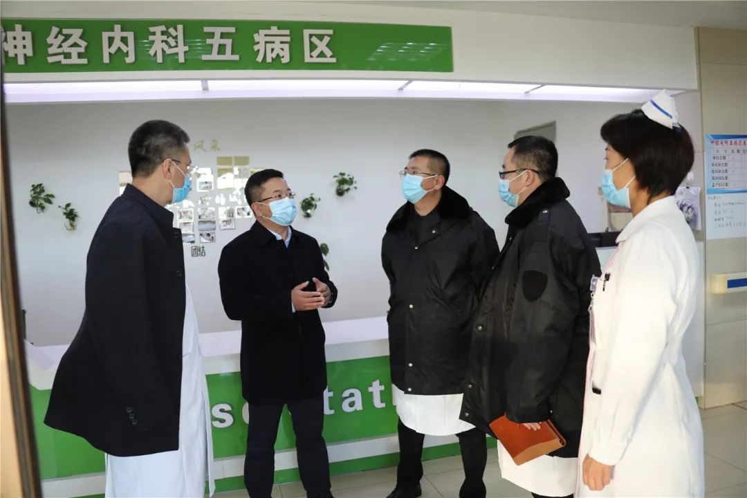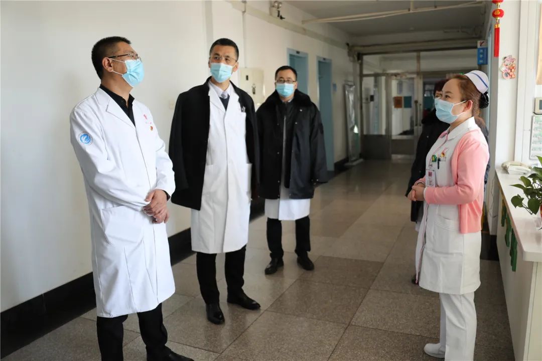 在病房,院领导对坚守岗位的医务人员表示慰问与感谢,并认真听取工作汇报,了解临床工作中存在的困难,逐项记录,责令相应部门立即整改。同时要求严格设立应急过渡病房,严格执行入院患者筛查流程,严把病区出入关,执行一患一陪护制度。对呼吸内科等重点科室在岗医务人员针对院感防控、个人防护、终末消毒等进行现场考核,确保防控意识入脑入心,保证病区患者及医务人员安全。
