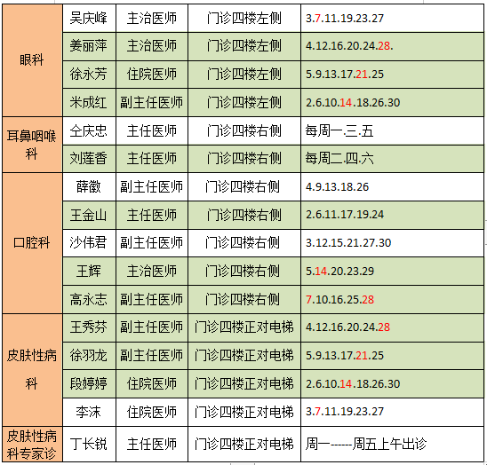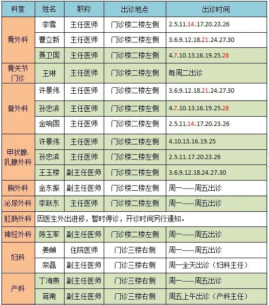 (原一重医院)十一月份门诊出诊表