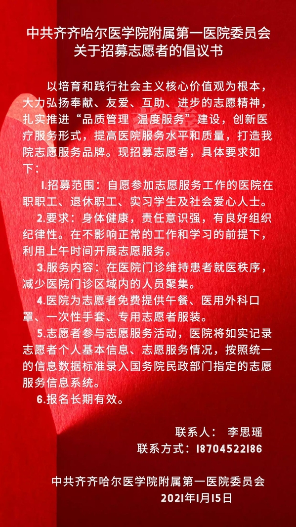 医院关于招募志愿者的倡议书