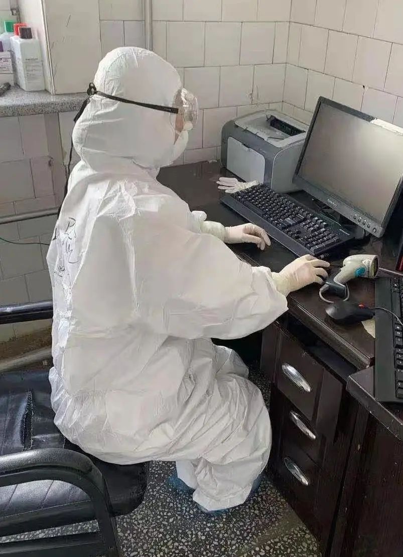 卢雪颖也是一名检验人,2020年考上了研究生,8月末她开启了读研之旅。对于不能与闫小景一起“并肩作战”,她深感遗憾。但是她主动与学校及科主任沟通,不定时的回科里值夜班,只为了能减轻同事的工作压力。此次疫情再袭鹤城,恰逢她放寒假,她便全身心投入到科里的工作中,与同事一起承担患者的检验工作。