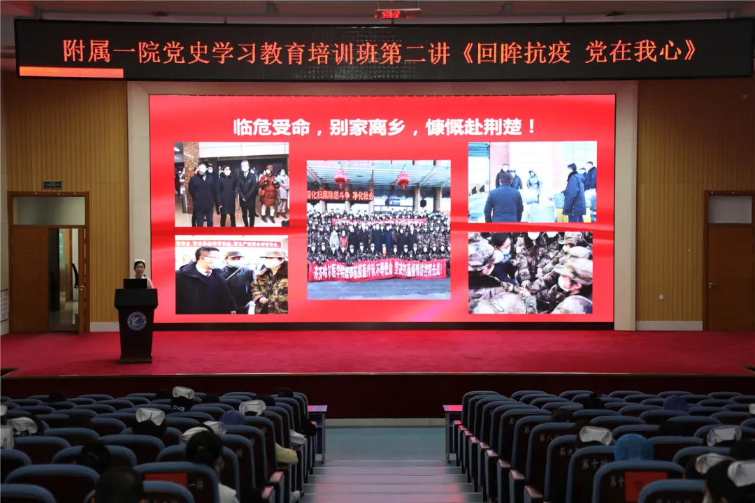 5月12日下午,齐医附属一院党史学习教育培训班第二讲在东院区学术报告厅顺利进行。本期讲座邀请我院援鄂医疗队队长、神经内科四病区护士长于洋分享她的抗疫故事。全院科主任、护士长、职能科室科长、党支部书记及支委200余人参会。