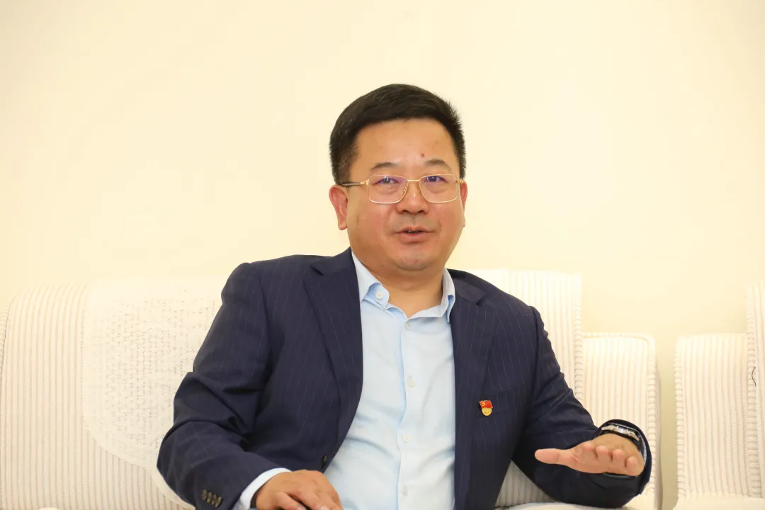 我院院长、党委副书记李忠原为调研组介绍医院文化
