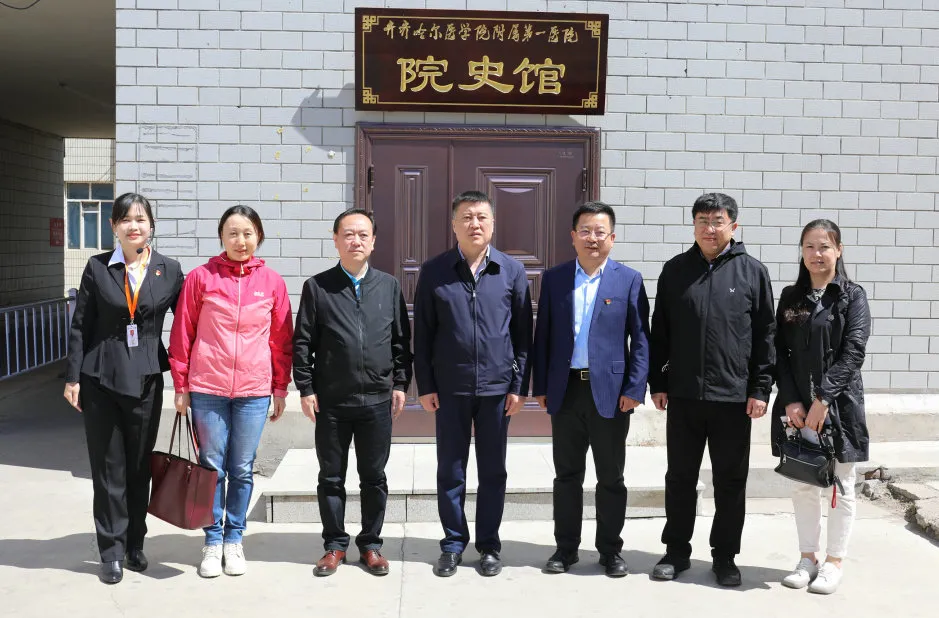 5月13日上午,齐齐哈尔市科协副主席刁齐龙、四级调研员郭志文以及普及部负责人王威、李文岩一行4人,莅临我院就齐医附属一院院史馆科普教育基地创建情况进行调研指导。我院院长、党委副书记李忠原、副院长艾立辉、党委委员吴颖以及宣传科、团委、科研科负责人陪同调研。