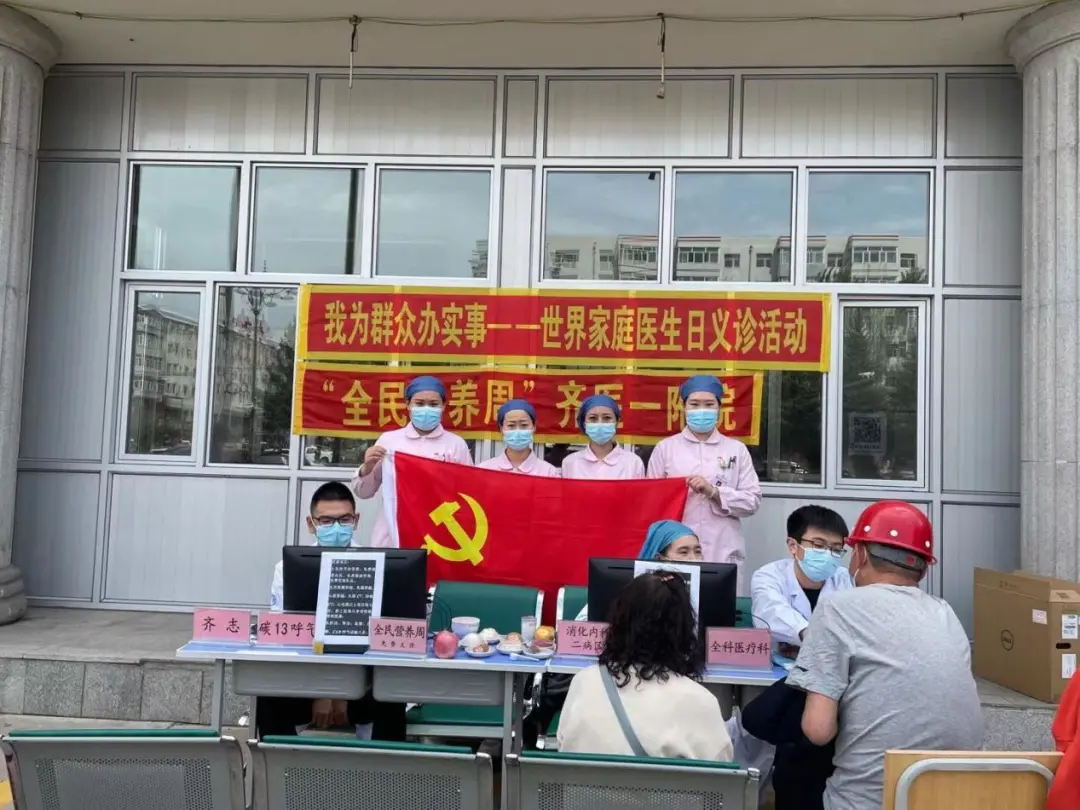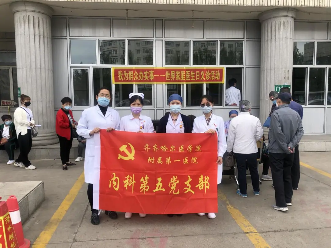 5月19日,恰逢世界家庭医生日,齐医附属一院全科医学科联合内科第五党支部、机关第三党支部在门诊楼前举办“我为群众办实事——世界家庭医生日”义诊活动。