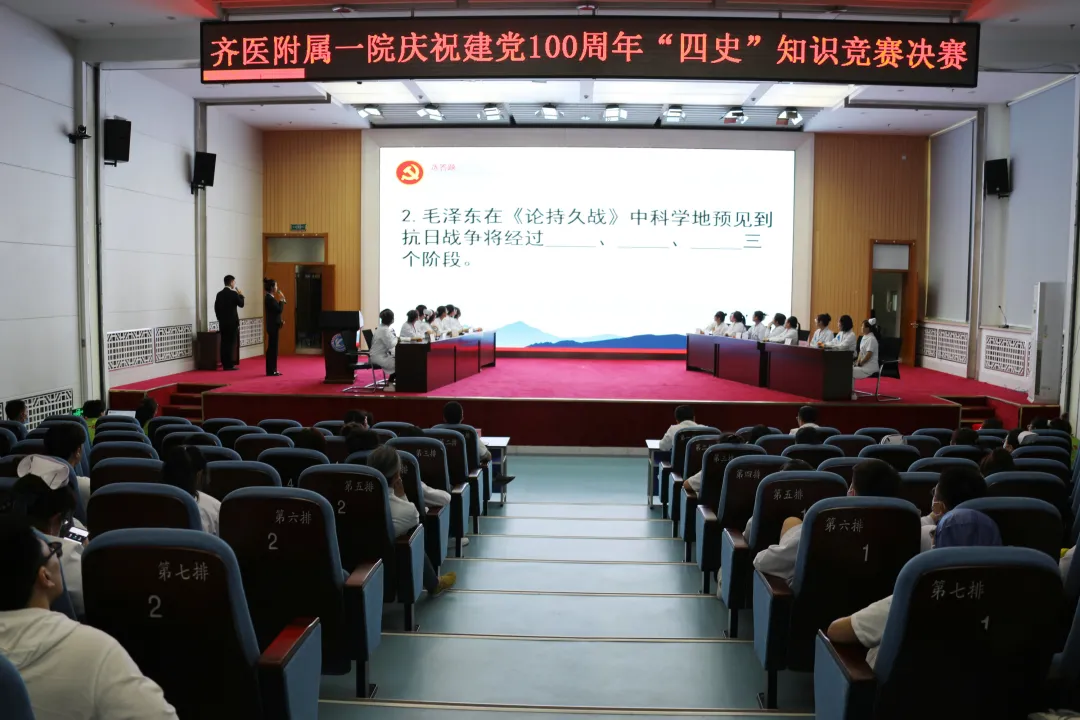 6月8日下午,齐医附属一院举办“知史爱党 知史爱院”庆祝建党100周年“四史”知识竞赛决赛。院长党委副书记李忠原、副院长刘增良、副院长刘忠锦出席活动,各党支部党员、积极分子、学生近200人参加活动。