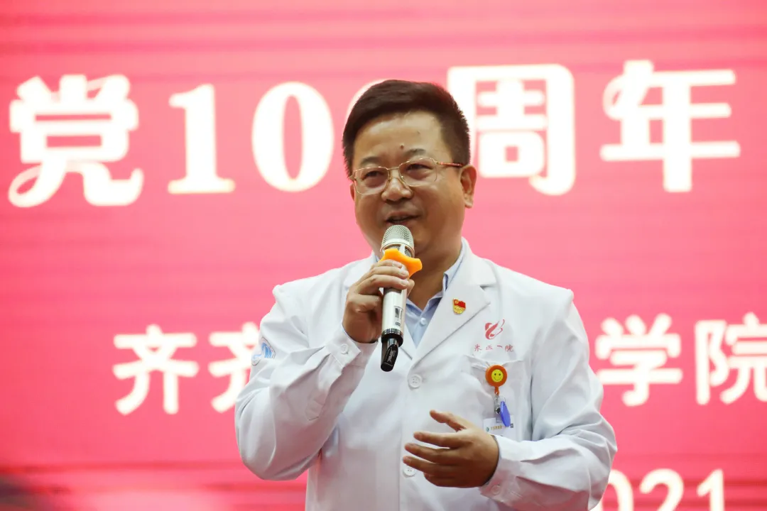 回顾建党百年历程,李院长为与会人员讲解了黄洋界保卫战的党史故事,并在现场吟诵毛泽东诗词《西江月·井冈山》。鼓励在场的职工和同学在未来的学习和工作中能够继续保持学习的热情,感受附属一院的文化,做一名合格的社会主义接班人,以优异的成绩献礼建党100周年和建校70周年。
