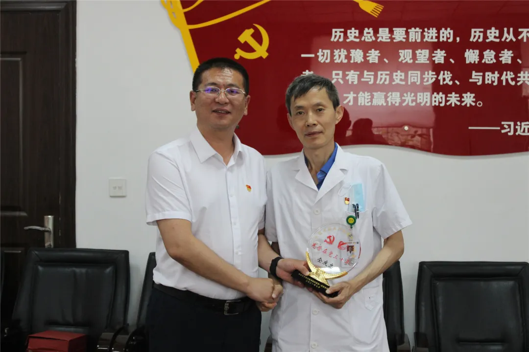 院领导为老党员仝庆忠颁发纪念奖牌