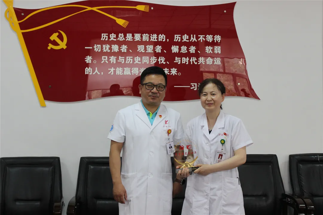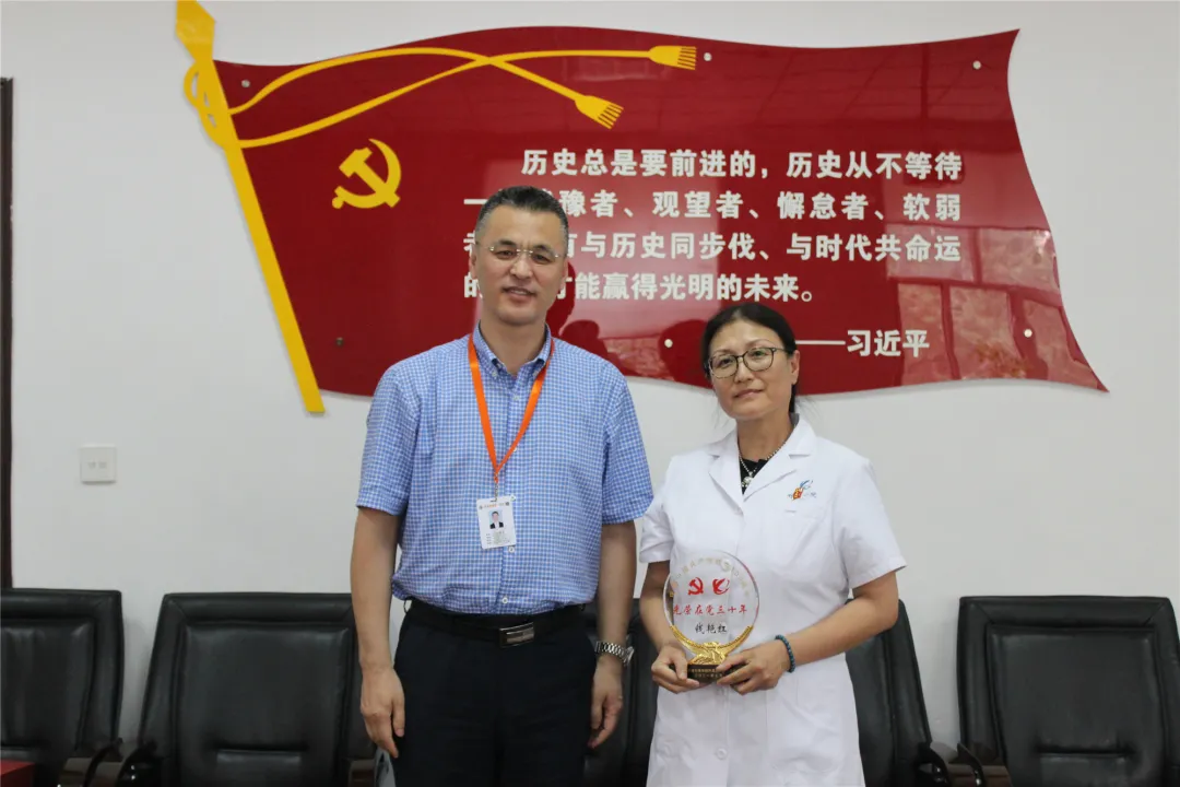 院领导为老党员张淑红颁发纪念奖牌