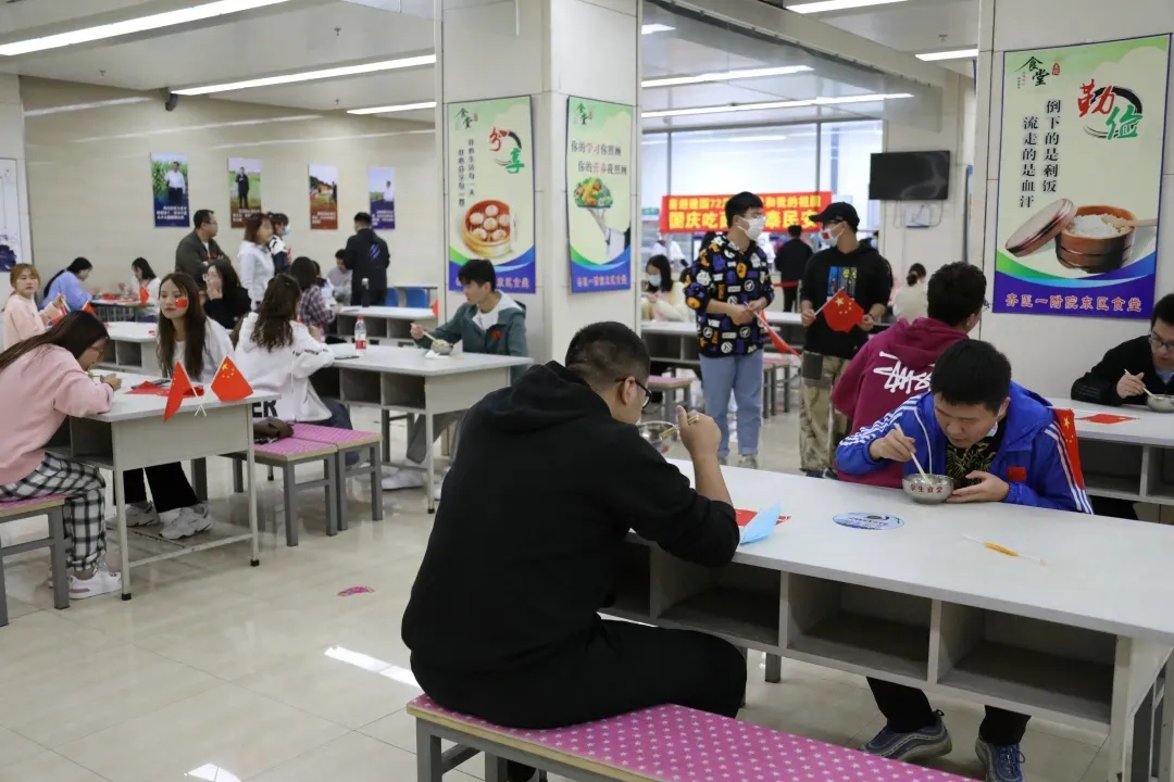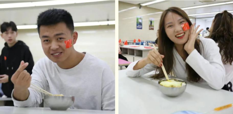 学生们欢乐享用国庆面