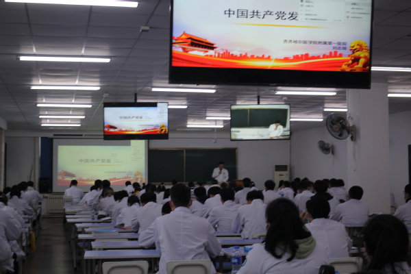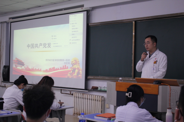 11月19日,齐医附属一院副院长刘忠锦为学生第一、第二党支部讲授了“四史学习”主题党课。此次党课共有学生党员百余人参加,学生科副科长马鑫主持。