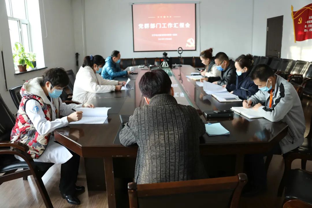 党委书记刘晖认真听取各部门的工作汇报和计划,肯定党群部门工作人员在2021年的工作成绩,赞扬党群部门人员工作认真、勤勉,甘于奉献、勇于挑战,尽职尽责完成本职工作,积极担当配合防疫工作,为医院党建工作打下坚实的基础。针对目前工作现状,刘书记强调要继续做好党员队伍建设和党组织生活工作,发挥党支部的战斗堡垒作用和党员的先锋模范作用,使党建工作与业务工作密切结合;扩大通讯员队伍,加强通讯员培训;培育医院文化,推广院歌传唱;加大志愿者服务力度,更好地服务职工和百姓;开展工会暖心服务,搭建服务平台,增强医院向心力和凝聚力;创新活动载体,扎实开展纪委工作,营造风清气正的医疗环境,希望党群部门继续站在统揽全局的高度,强化党建引领,扎实做好各项工作,推动医院高质量内涵式发展。