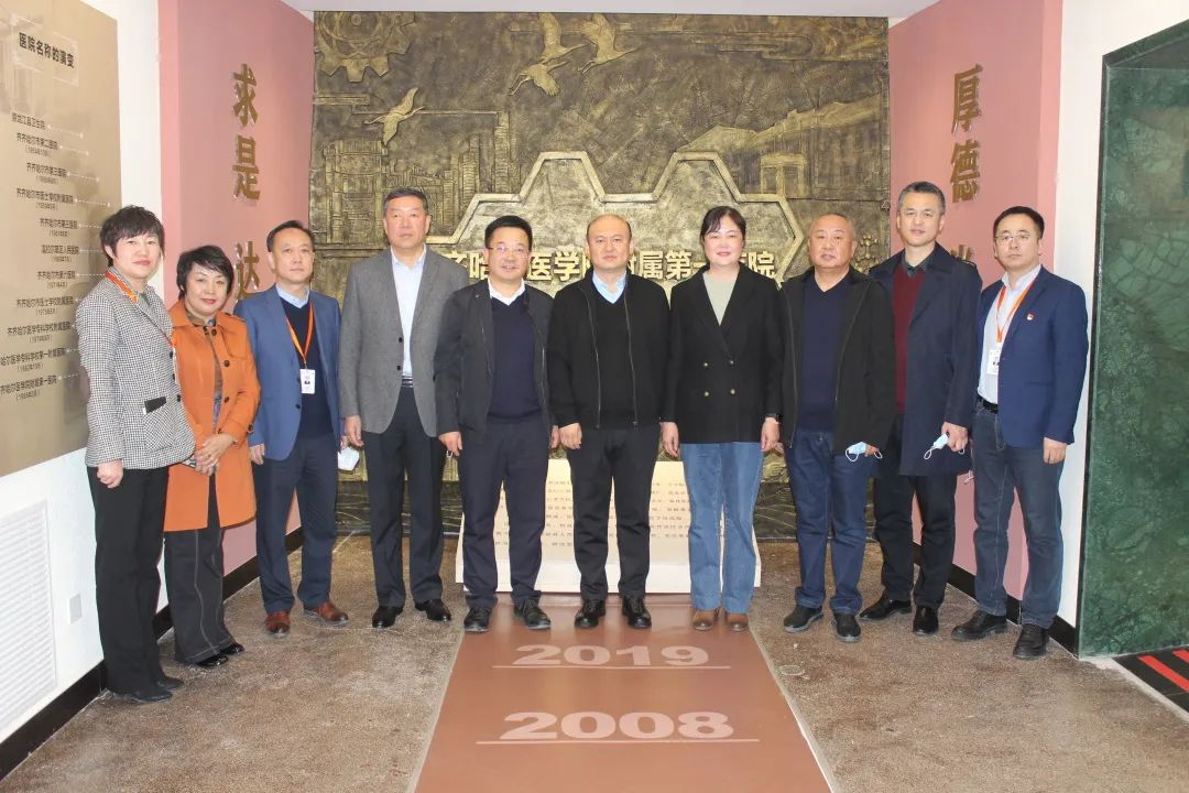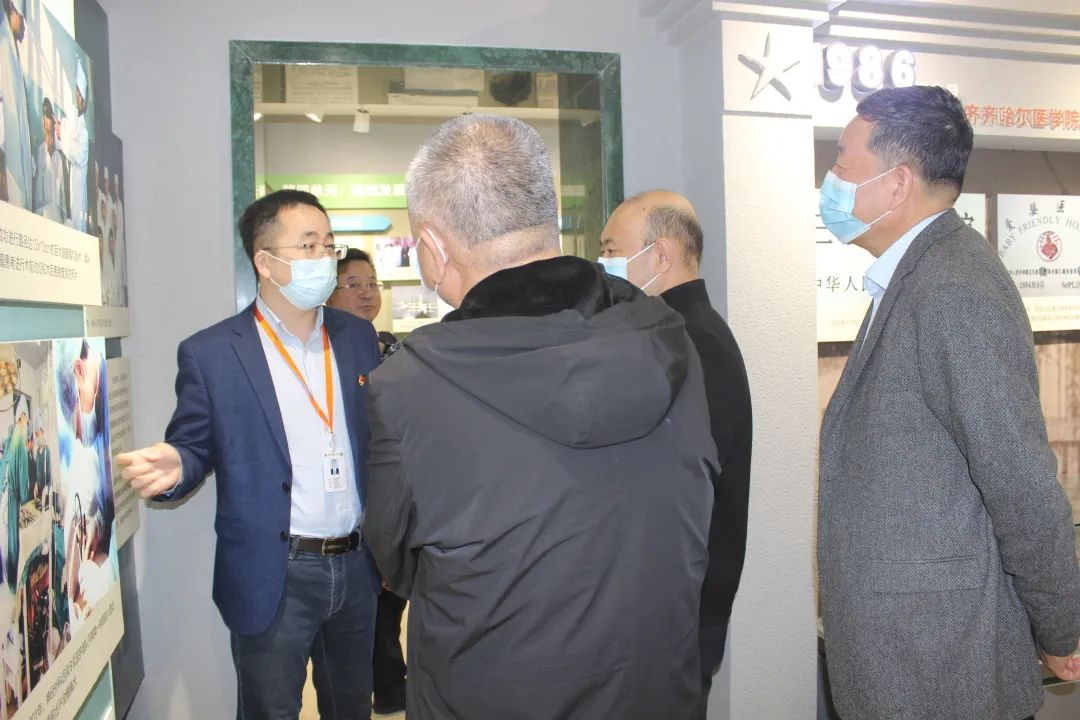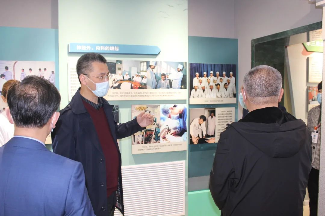 李辉总经理一行首先参观了医院院史馆。李忠原院长带领李辉总经理一行沿着历史的脉络了解医院的发展进程,从医疗技术、重点专科建设、设备仪器、人才培养、社会公益等方面介绍了医院的总体情况。讲到专科发展方向时,我院神经外科专家、副院长刘增良和神经内科专家、副院长刘忠锦向来访领导介绍医院神经内外科的发展沿革及前沿医学。李辉总经理对我院多年来取得的成绩表示赞赏,在了解到医院一直在做乡医培训工程、家庭医生签约服务、援外援疆等活动时,认为附属一院确实是秉持三甲级公立医院的公益性,积极投身织牢乡医网底工程,造福了千万百姓家,是一所值得信赖的百姓医院。