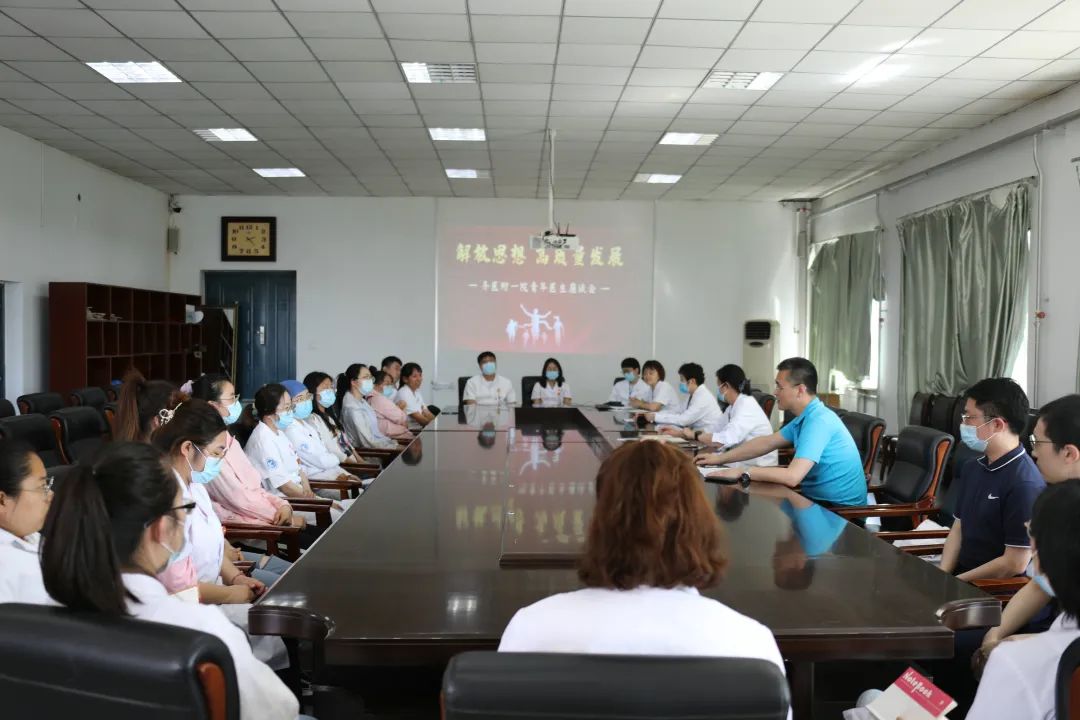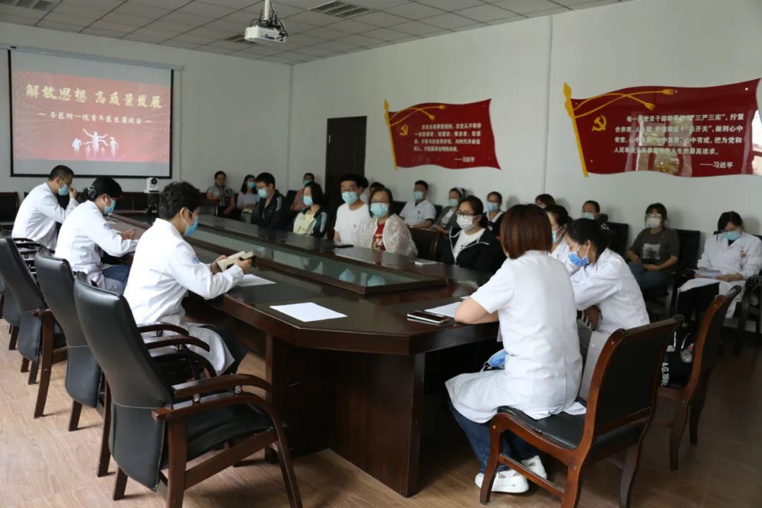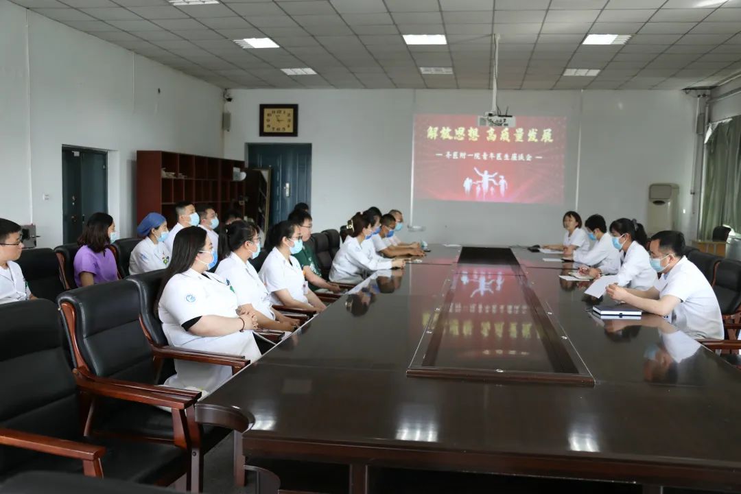 6月14、15、16日下午3:00,齐医附属一院召开“解放思想 高质量发展”青年医生座谈会。党委书记刘晖、副院长刘增良、副院长刘忠锦、纪委书记张娜出席会议,百余名青年医生按照内科、外科、药技科系划分参加座谈会。会议由团委副书记李思瑶主持。