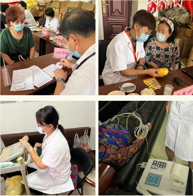 在科普讲座后,义诊活动火热进行。我院的专家们认真接待每一位居民,耐心回答他们咨询的问题,为他们讲解治疗方法和用药原则。心电、超声候诊区人满为患,居民们感谢附属一院提供免费的健康体检。其中,中医科王秀芬主任患者最多,她利用整体观念和辨证论治的理念,通过“望闻问切”的手段为居民们解决疑难杂症,深得患者的信任,许多老年朋友都加入了我院中医患者微信群。