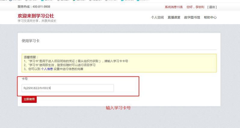 第二步:输入学习卡号。(在文档中)