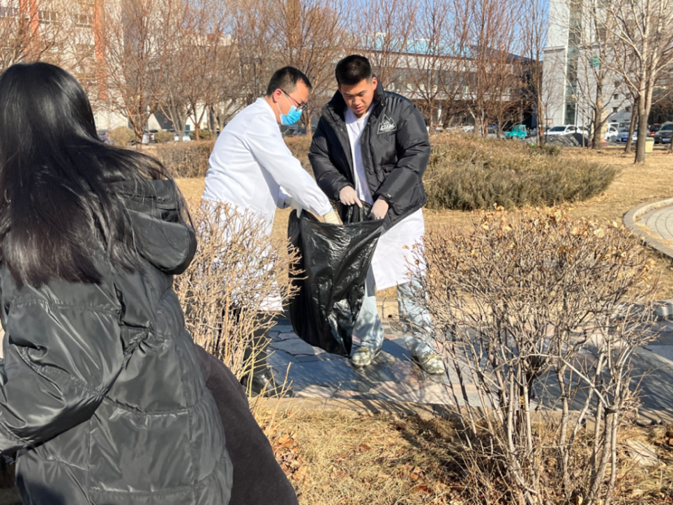 活动中,学生第一党支部书记马鑫带领同学们,采用划片划域的方式,力争不留死角,将本次活动效果发挥到最大。同学们分工明确,秩序良好。大家不怕脏、不怕累、充分发扬了青年志愿者精神,用自己的实际行动展示着志愿服务的热情。经过一上午的努力,同学们“战果累累”,医院更加干净整洁。