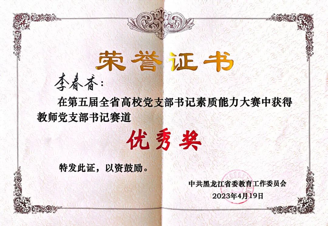 4月17-19日,由省委教育工委主办、哈尔滨师范大学党委承办的第五届全省高校党支部书记素质能力大赛成功在哈尔滨举办。医院医技第一党支部书记、核医学科主任李春香作为学院选派的教师党支部书记代表在大赛中荣获优秀奖。