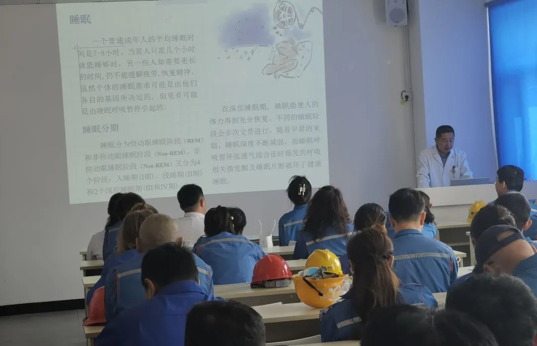 漆毅主任结合丰富的临床经验,以“睡眠呼吸暂停”健康科普为主题,详细讲解了什么是睡眠呼吸暂停低通气综合征及其分级、分型、症状和对身体的影响;介绍了阻塞型睡眠呼吸暂停的危害、诊断及治疗方法。他强调企业职工要养成良好生活习惯、保持规律睡眠时间,如果认为自己或家人有此症状,一定及时到正规医院就诊。