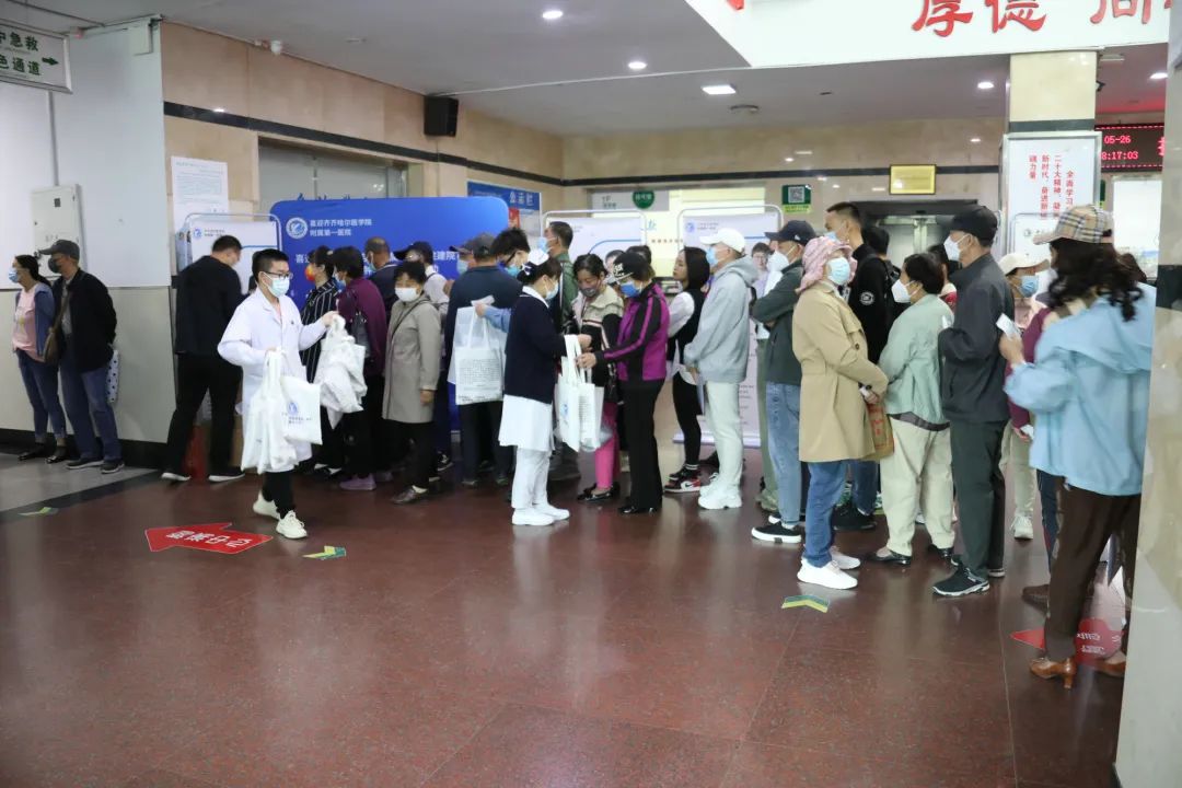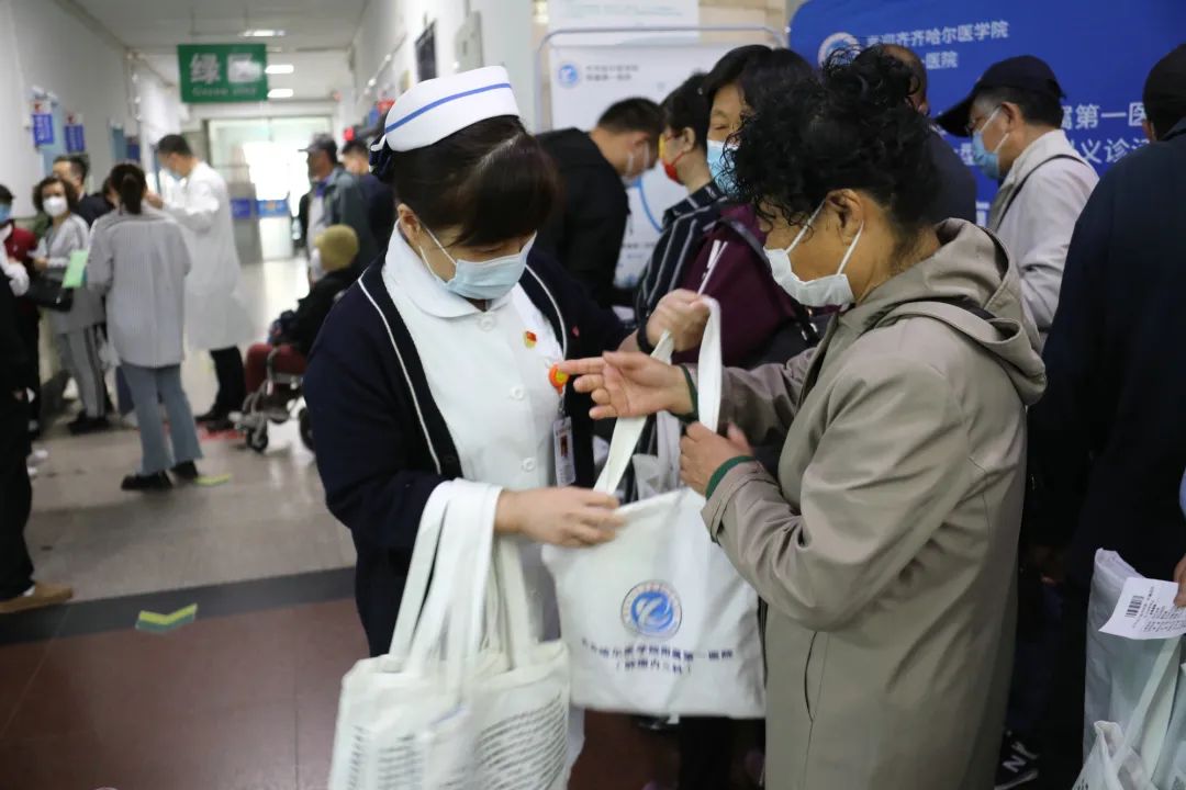 医务人员现场发放医疗就诊帆布袋