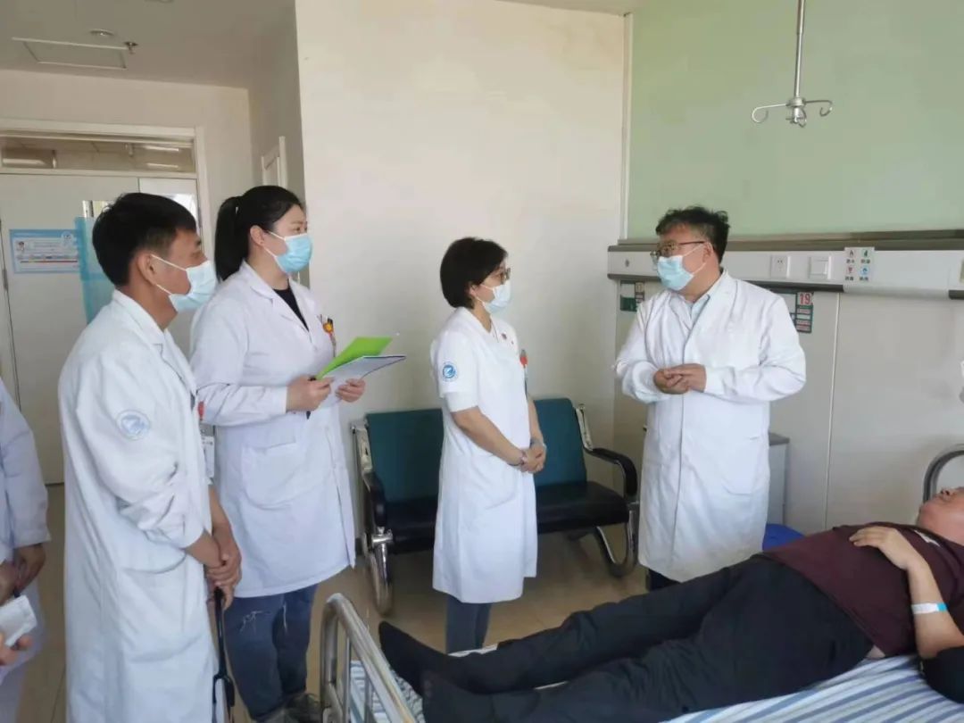 随后,肿瘤内三科付荣主任邀请两位专家参观了我院肿瘤科病房,在医生办公室开展了病例分析讨论会。院长、党委副书记李忠原,副院长刘增良现场观摩病例分析讨论会。李院长代表医院感谢两位专家的到来,希望以后多多开展此类联合义诊行动,即有助于提高我院肿瘤系统疾病治疗水平,又能造福周边百姓健康。会后,两位专家还亲自到病房探视病情较为复杂的患者,并询问一些具体情况后,做出了诊疗计划以及科学的治疗方案。