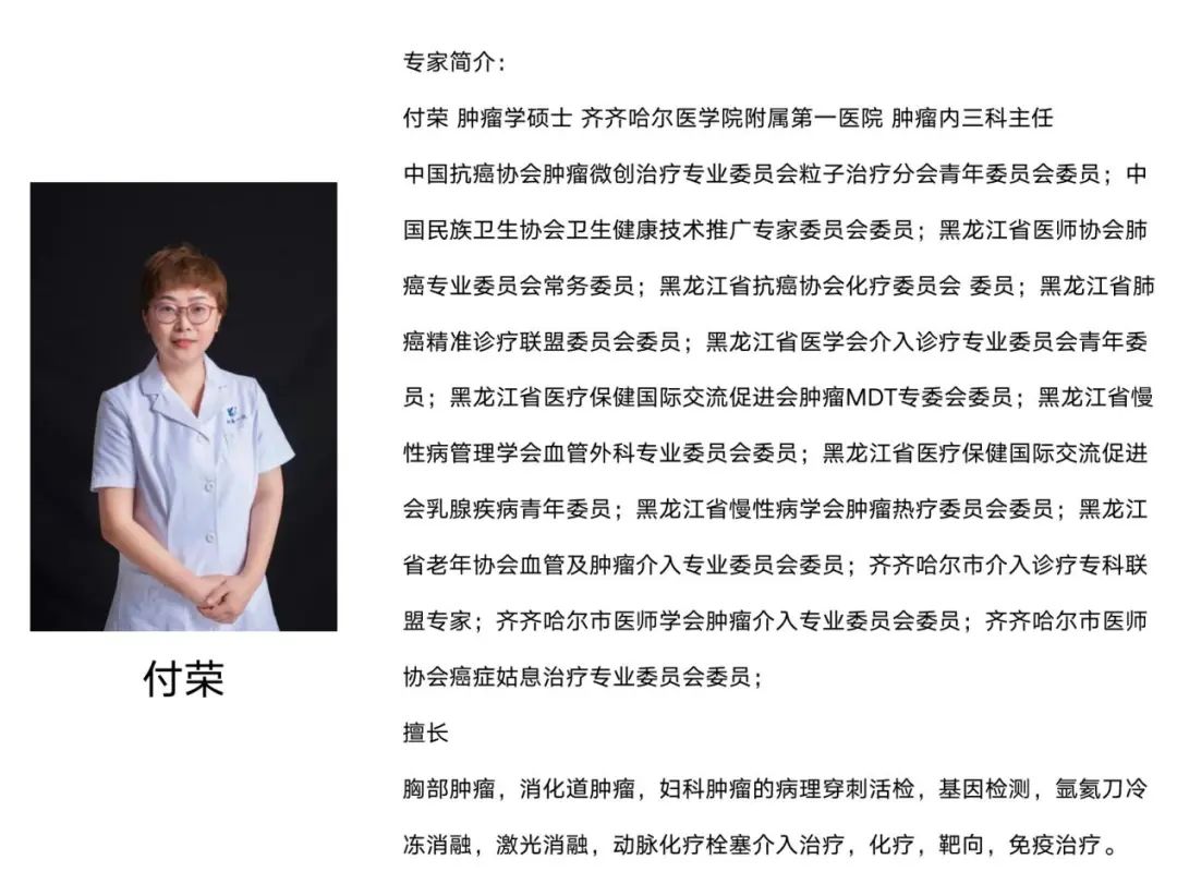 齐医附属一院肿瘤科是黑龙江省肺癌精准诊疗联盟成员单位。科室擅长各种恶性肿瘤的化疗、靶向治疗、免疫治疗、内分泌治疗、肿瘤微创介入治疗及热灌注联合化疗等综合疗法。常规开展肿瘤MDT多学科讨论,在肿瘤治疗上实行规范化和个体化相结合的治疗方案,严格遵循国际、国内肿瘤诊疗指南,在晚期、复发、难治的肿瘤治疗上经验丰富,效果明显,影响力辐射周边地区。