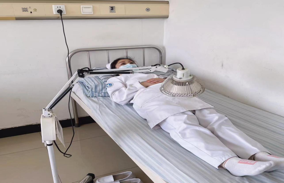 护士窦辉体验红外线治疗仪,她说平时看到患者做觉得热热的会很舒服,当自己体验过才知道一定要掌握好距离,以免皮肤烫伤,并且做的过程中始终保持一个卧位姿势感觉床铺很硬,很累很不舒服。在今后治疗中操作前应为病人选择一个舒适的体位,并掌握合适距离,增强病人的舒适感。