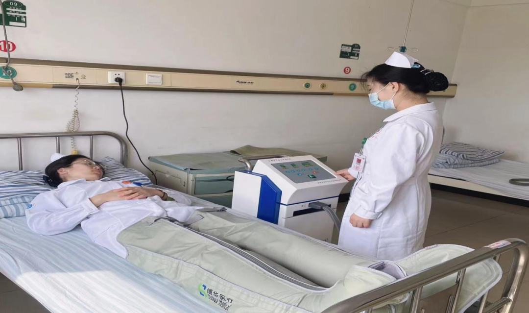 护士刘爽体验空气压力治疗仪,她说刚开始安装机器时两个护士围着我操作我还觉得是一种享受,但随着机器开始工作发出了“嗡嗡”声,我有一些紧张,不知道会不会疼.......随着气流的挤压肢体逐渐出现了酸胀感,我的心情也越来越紧张,这个时候特别希望护士说一句别紧张、没事的、不疼,半个小时左右肢体不能活动并始终保持仰卧位姿势有些不舒适。在以后的护理工作中要向患者做好宣教,取得配合,多一些暖心的话语缓解病人的紧张感。