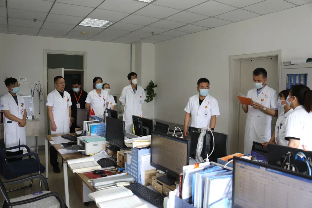 为加强安全生产工作,有效防范、化解各类安全隐患,确保在院患者度过一个安全、祥和的节日,6月20日上午,院长党委副书记李忠原、党委书记刘晖带队,院领导班子成员及各职能科室主要负责同志深入西院区开展行政查房。