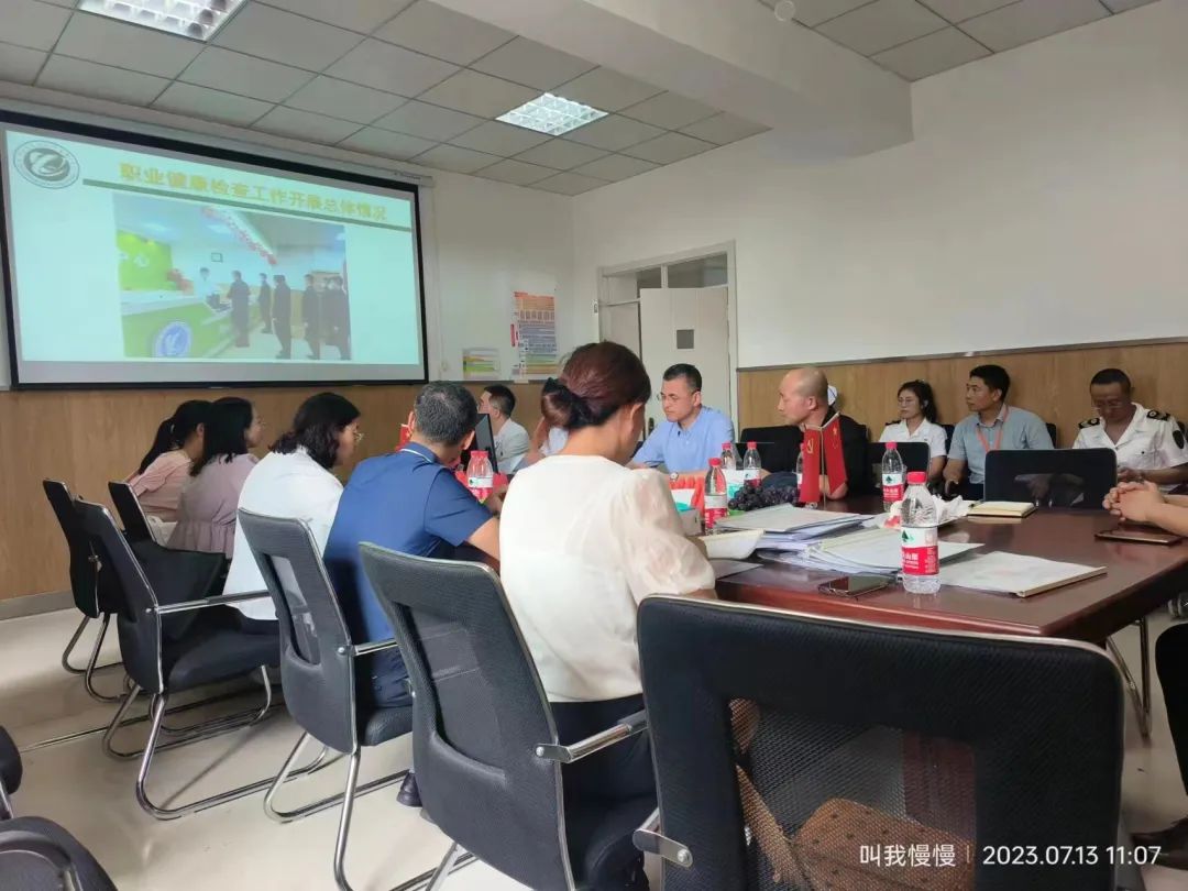 随后,健康体检中心副主任解诗远从职业健康检查工作开展总体情况;职业健康检查人才培养与管理;实验室、检查室建设与管理;外出体检工作开展情况;诊疗服务中典型经验和做法及不足等八个方面对医院职业健康体检工作进行详细的汇报。