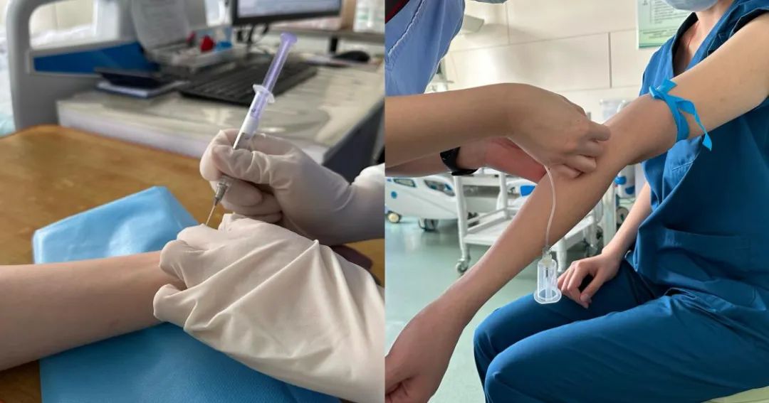 第二项我们体验了动脉血采集。动脉血采集是ICU最常做的一个操作。在体验之前,我一直感觉抽动脉血就和抽静脉血差不多,但是当真的被抽取动脉血的那一瞬间的疼还是有点忍受不了,就像有人拿针在戳你的神经一样,尤其是进针未回血再退针时整个食指瞬间变麻,那股酸爽劲简直无法形容。