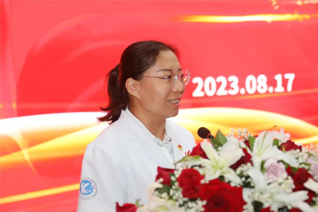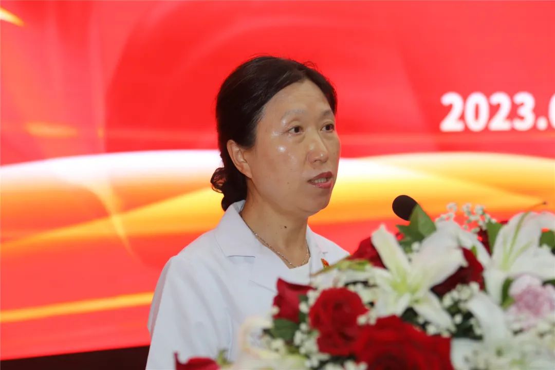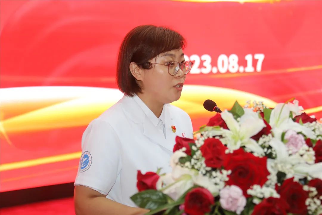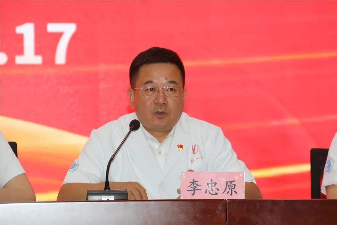 院长、党委副书记李忠原代表医院领导班子向全院医师致以节日的问候和崇高的敬意,向受到表彰的同志们表示热烈的祝贺!李院长简单介绍了医院运营情况,以及科室、人才及梯队建设情况。李院长表示,三年疫情已过,我院全体职工经受住了考验,取得了最终的胜利和令人瞩目的成绩。今年上半年,医院各项重点工作稳步推进,例如获批国家药物临床试验机构(GCP)及国家临床药师培训基地通过评审并开始招生等。今年的主题是“勇担健康使命 铸就时代新功”,接下来全院医务工作者要上下齐心、共同努力,营造尊重医师、尊重医学科学的良好氛围,全院医师要自尊自强、奋发有为,以积极向上的姿态迎接各种工作上的考验。