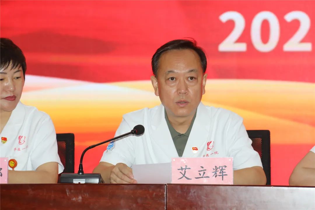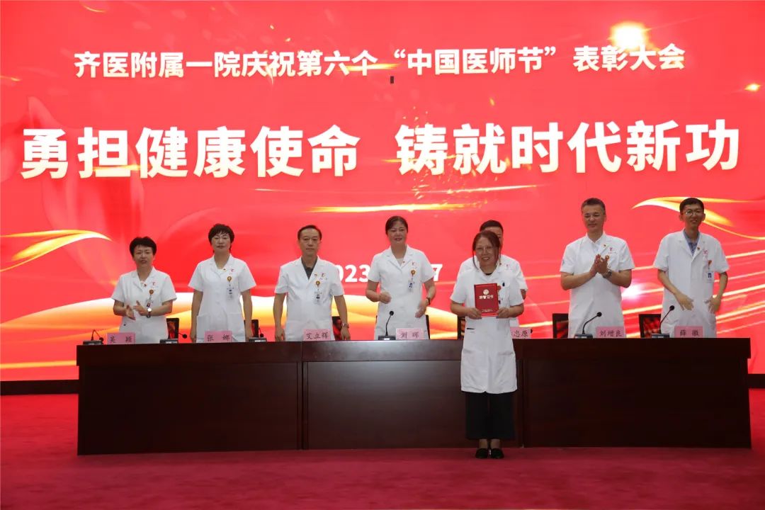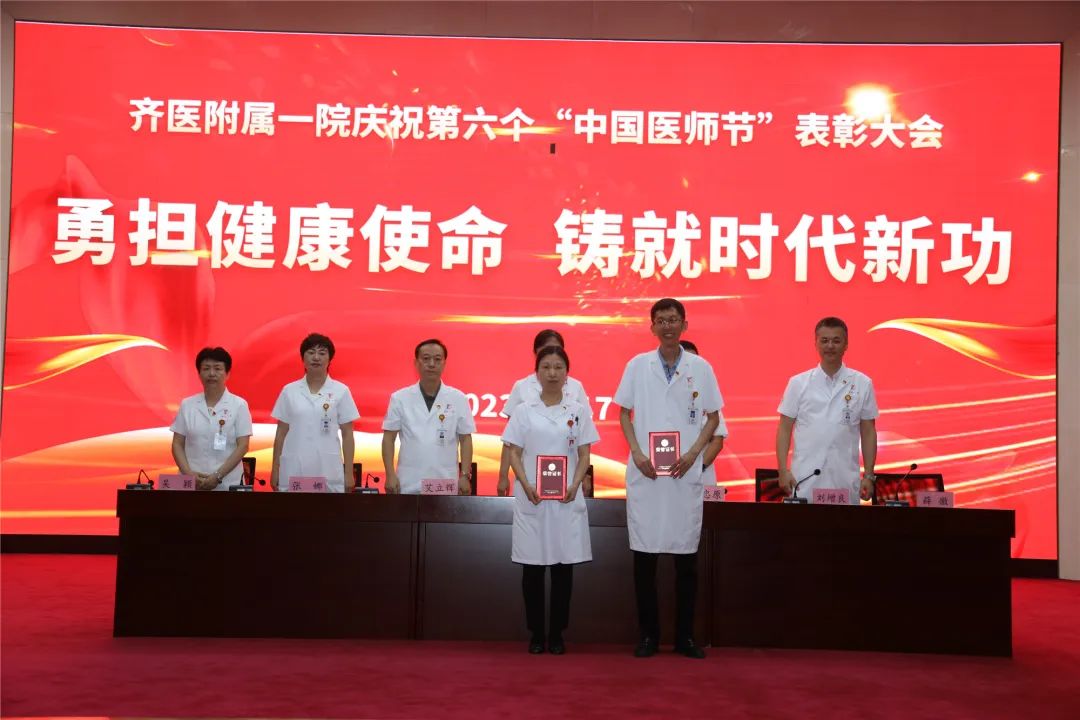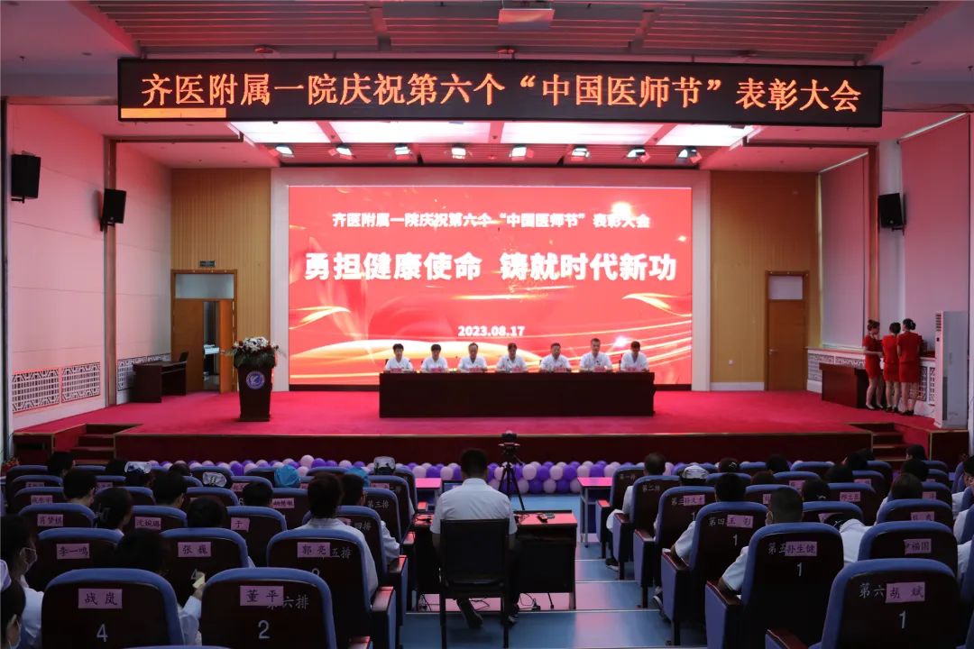 2023年8月19日是第六个中国医师节,也是党的二十大召开后的首个中国医师节。今年的节日主题是“勇担健康使命 铸就时代新功”。为充分发挥先进典型示范引领作用,激励医院广大医务工作者继承优良传统作风,在新时代卫生健康事业发展中砥砺奋进,8月17日下午,齐医附属一院举行了庆祝第六个“中国医师节”表彰大会。医院领导班子成员、科主任护士长及受表彰人员200余人参加会议,会议由党委书记刘晖主持。