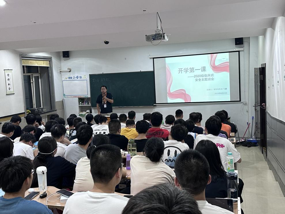 为了进一步加强安全教育、强化安全管理,提高学生安全意识和自我保护能力,增强全体师生的安全观念,保障生命安全。8月23-24日,学生科副科长马鑫为 2020 级临床医学专业、临床专业全科方向及精神医学专业学生开展了一堂以“巩牢学生安全教育防线”为主题的班会。