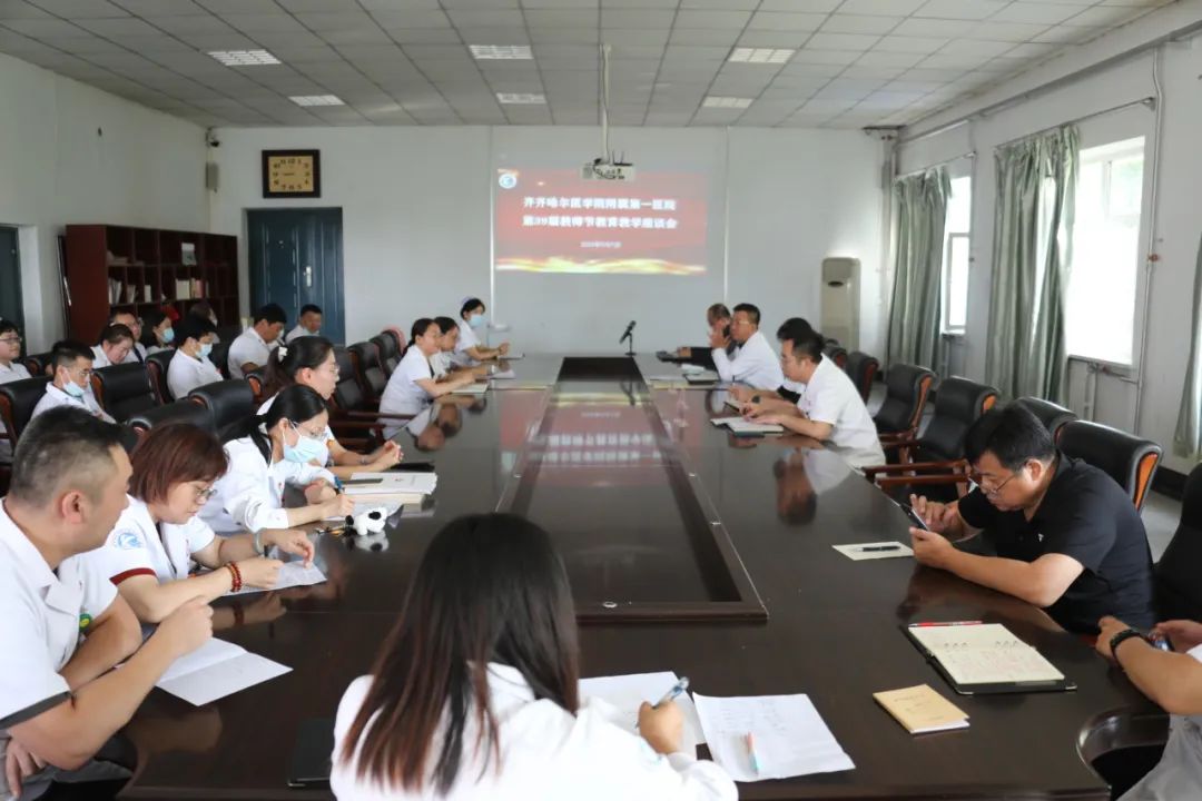 秋高气爽,桃李芬芳。9月7日下午,齐医附属一院在第四会议室召开教师节教育教学座谈会。党委书记刘晖、院长党委副书记李忠原、副院长刘忠锦与教研室主任、住培专业基地负责人、秘书等教师代表们欢聚一堂,共同庆祝第39个教师节。副院长刘忠锦主持座谈会。