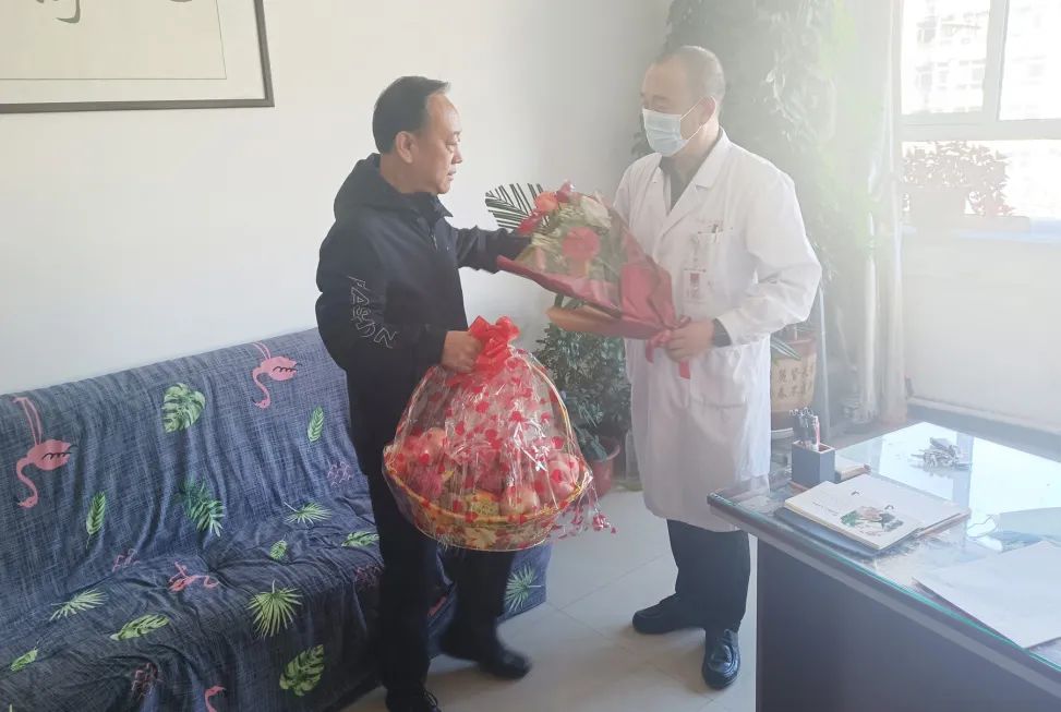 院领导亲手将鲜花和水果送到专家手中,与他们亲切交谈,询问了他们在工作中的感受、遇到的问题,向他们长久以来对医院所做出的突出贡献表示感谢,并嘱咐他们保重身体,弘扬钻研、奉献的附一精神,开展医疗新技术,持续传播正能量。