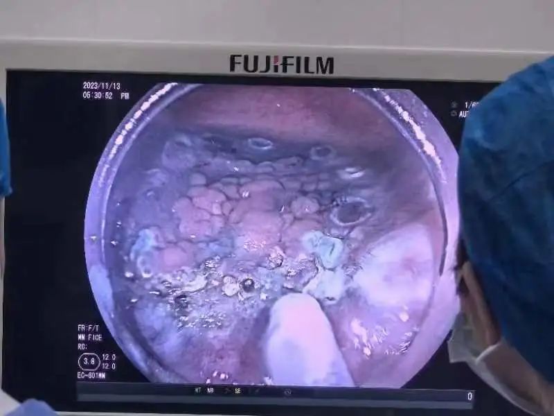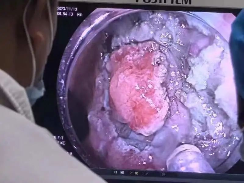 陆主任与患者讲明两种治疗方法的优缺点,患者认为能够微创治疗是最好的选择。术前,陆主任带领消化内科一病区团队进行了充分的讨论,确定治疗方案,将手术日期定于11月13日。术中,尽管患者病变部位面积大,操作有一定的难度,但在腔镜中心护士长郭健丽和护士李楠的完美配合下,历时四个小时,陆佩东主任成功为该患完整的切除肿瘤。目前,患者术后恢复情况良好,满意度极高。