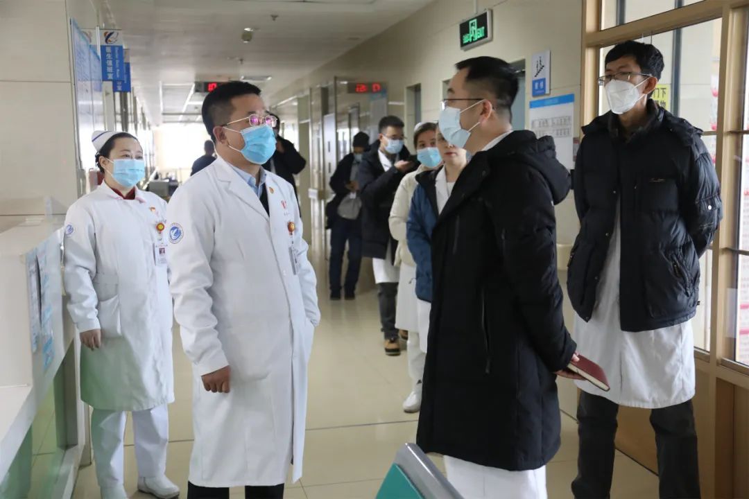 李院长一行深入东西区门急诊、住院病区、氧气站、消防控制室、食堂等重点部位和重点科室及大学生和研究生宿舍,围绕医疗质量与安全、消防安全、医护人员节假日排班、设备运行等内容进行逐一排查,认真听取各科室的工作需求和难点问题,及时排除各类安全隐患。并随机询问医护人员对住院患者开展消防安全、入院流程和须知等宣教情况,要求医护人员增强安全意识,提升为患者服务的能力水平。