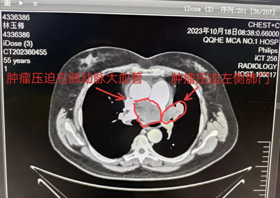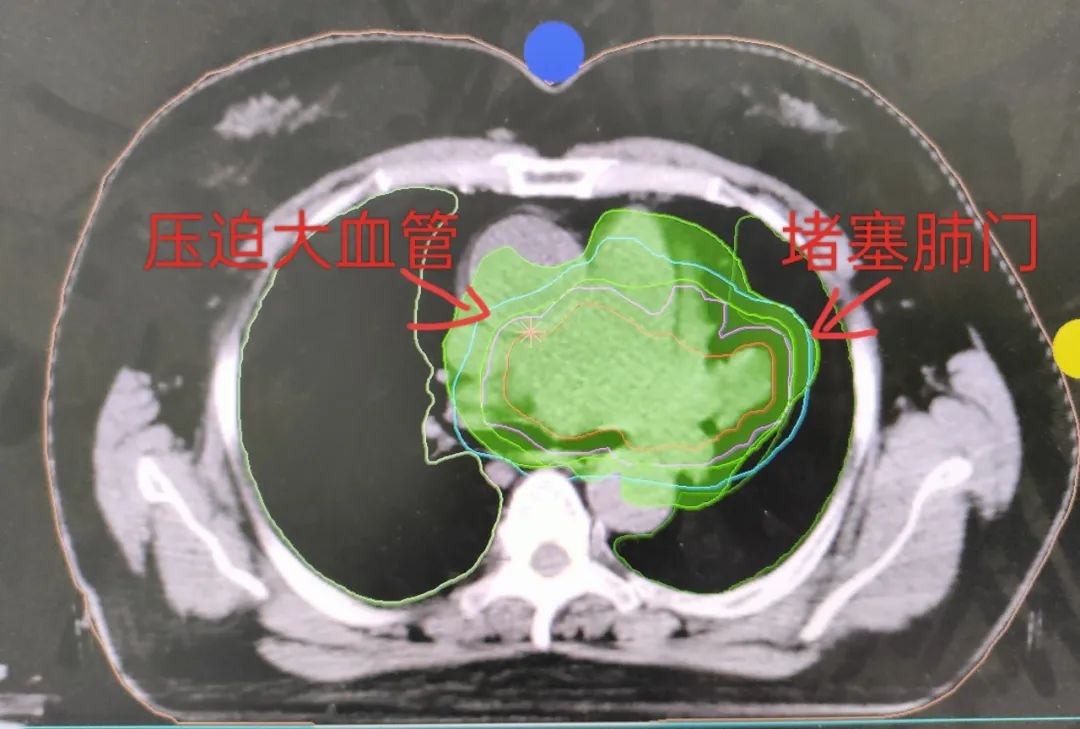 (注:治疗前肺部病灶压迫大血管、堵塞肺门)