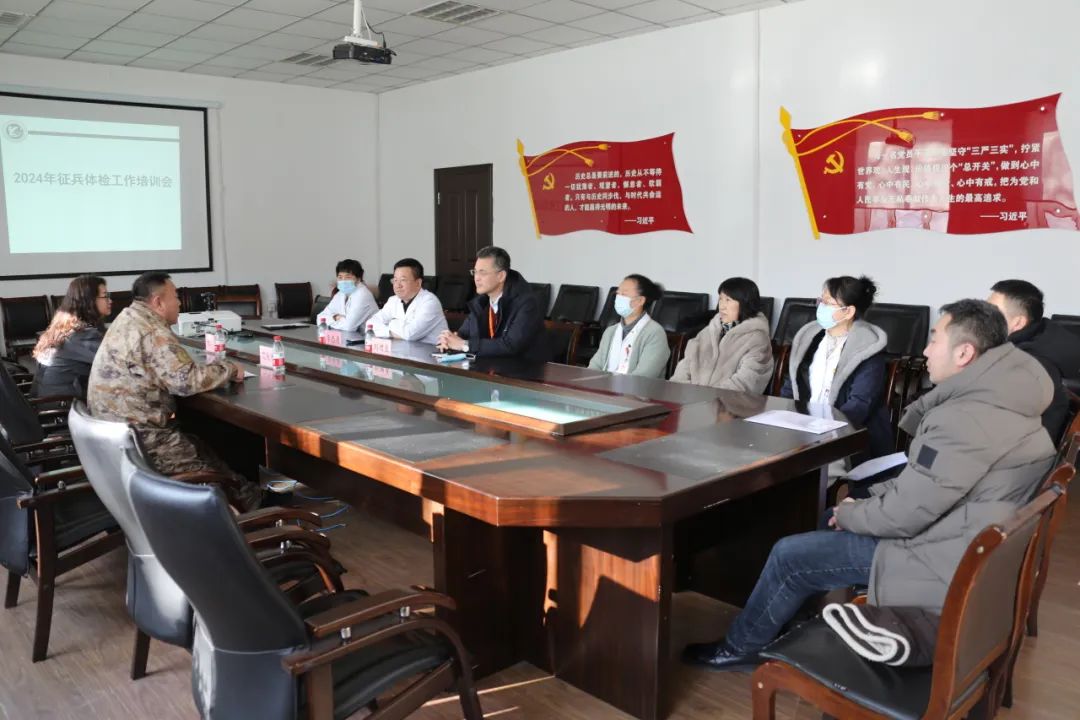 1月25日上午,富拉尔基区2024年春季征兵体检培训会在齐医附属一院召开。富拉尔基区人武部部长艾纯明、我院院长党委副书记李忠原、副院长刘增良、区卫健委副局长赵文鑫出席会议。副院长刘增良主持会议,我院体检中心扈瑄主任、解诗远副主任及全体参检人员参加培训。