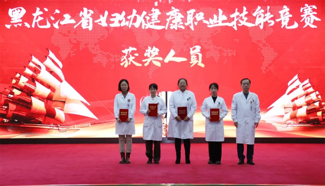 副院长刘增良宣读《关于表彰2023年黑龙江省妇幼健康职业技能竞赛获奖人员的决定》及《关于表彰2023年度黑龙江省医疗卫生新技术推广项目获奖人员的决定》,副院长艾立辉和纪委书记张娜分别为获奖人员颁发荣誉证书。