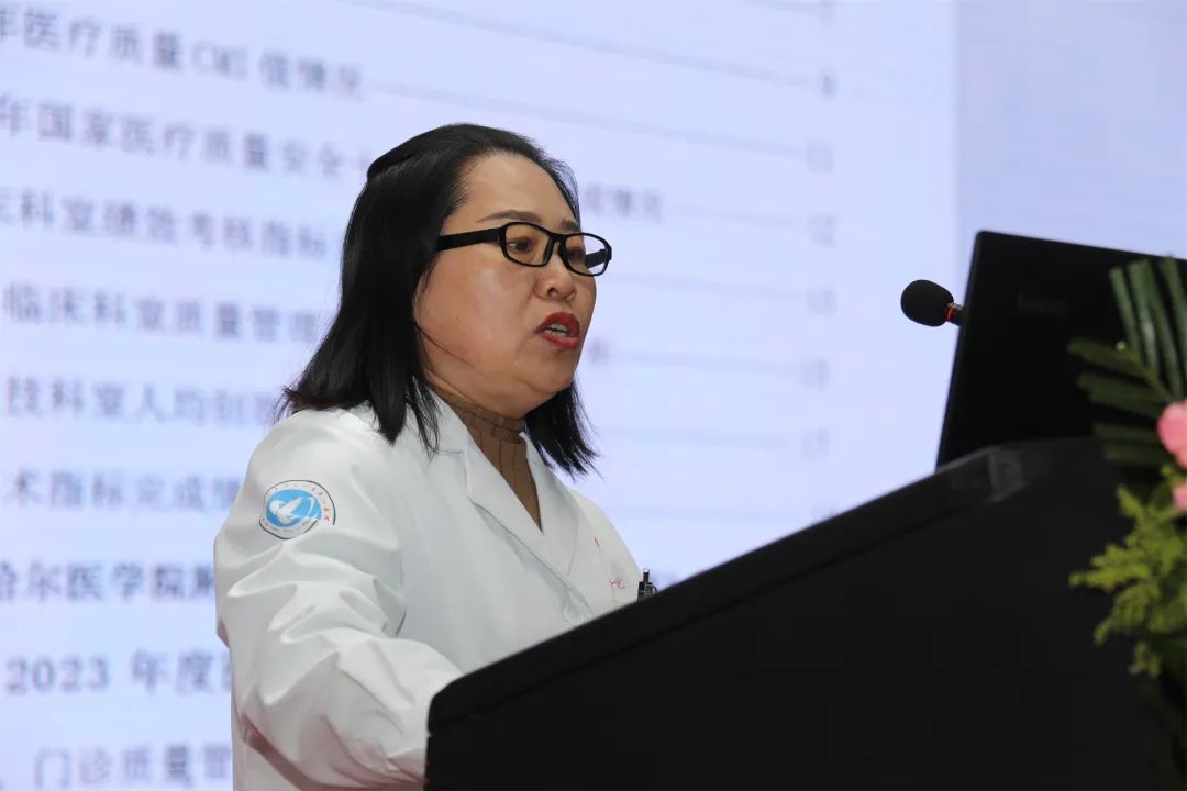 护理部范桂红、医务部张羽镝、质控办张玲分别宣读《齐医附属一院进一步改善护理服务攻坚行动计划工作方案(2024-2025年)》《齐医附属一院全面提升医疗质量、保障患者安全两年攻坚行动计划(2024-2025年)》及《齐医附属一院2023年医疗质量报告》。