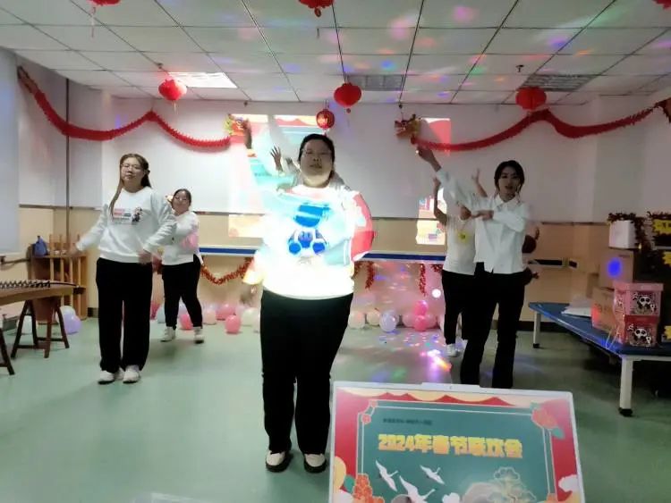 联欢会在康复治疗师为大家带来了青春洋溢的街舞《相亲相爱》拉开帷幕,歌舞小品《最炫民族风》诙谐幽默,歌曲《这世界有那么多人》唱出幸而为富区人民保驾护航的荣耀。