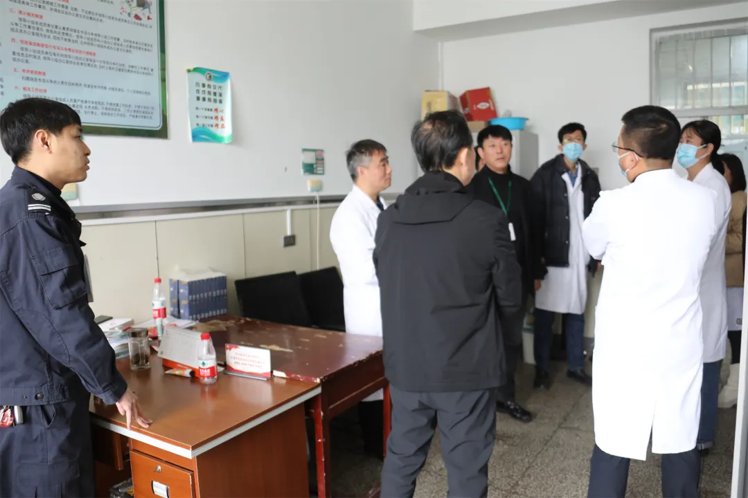查房中,院领导要求各科室要始终将医疗质量、医疗安全放在第一位,严把医疗质量关,确保医疗安全;不断提高服务质量,改善服务态度,为辖区各企业和广大群众提供强有力的医疗保障;妥善安排好节假日期间值班、安全保卫等工作,全力确保医院平稳安全运行。