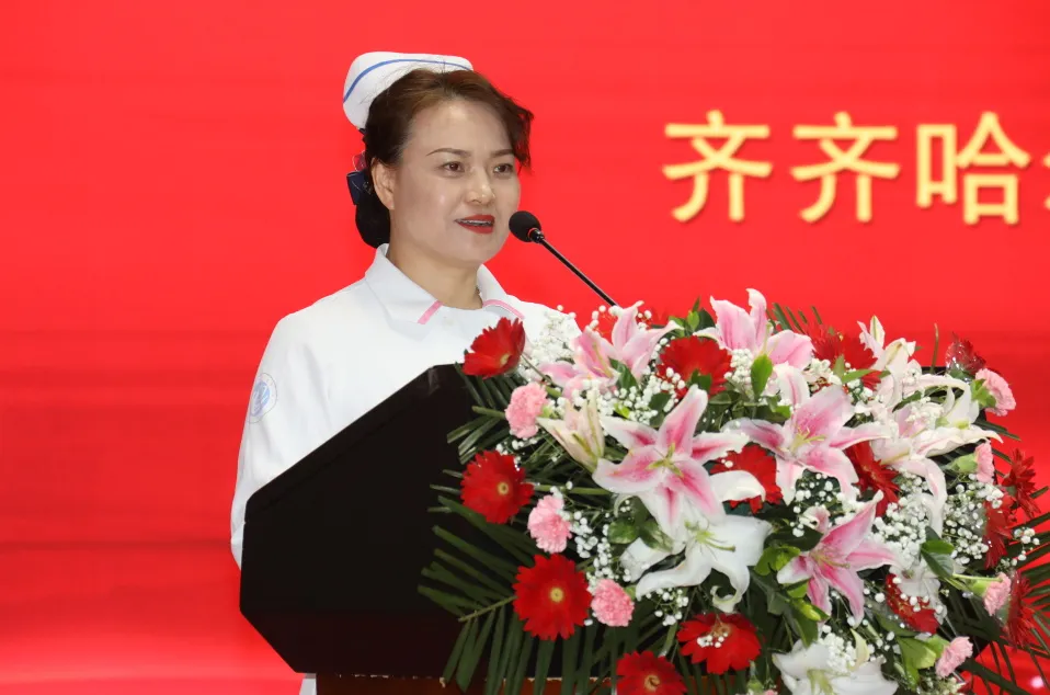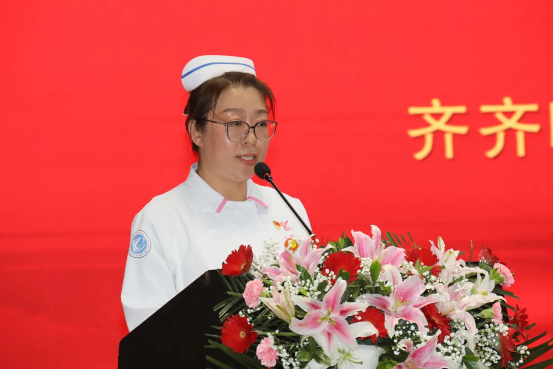 院长、党委副书记李忠原代表院领导班子向受表彰的个人及团队表示热烈的祝贺!对他们在日常护理工作及在国家、省、市各类比赛中所取得的优异成绩给予充分肯定和高度认可!同时向全院临床一线的护理工作者及关心支持护理工作的家属们致以节日的问候和崇高的敬意!李院长表示我院一代代护理工作者以行动践行南丁格尔誓言,护理队伍不断壮大,学历结构逐步提高;护理工作扎实推进,护理模式改革创新;护理服务持续优化,患者就医体验提升;护理岗位人才辈出,接连斩获各类荣誉,优质品牌名声在外。李院长指出今年的护士节主题是“发展护士队伍,优化护理服务”,医院将进一步稳定和发展护士队伍,推出并完善增强护士职业荣誉感、调动工作积极性的各项惠护举措,全院护理工作者要继续继承和发扬南丁格尔精神,脚踏实地、勤奋工作,以奋发有为的精神状态和脚踏实地的工作作风,为提升医院护理质量和护理服务水平,保障人民群众身体健康,建设健康龙江作出更大的贡献!为医院建院70周年献礼!