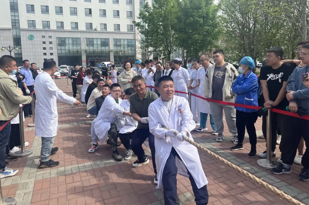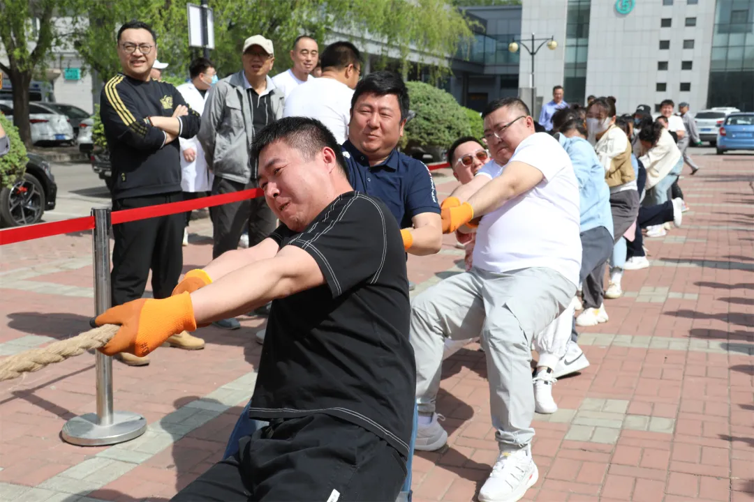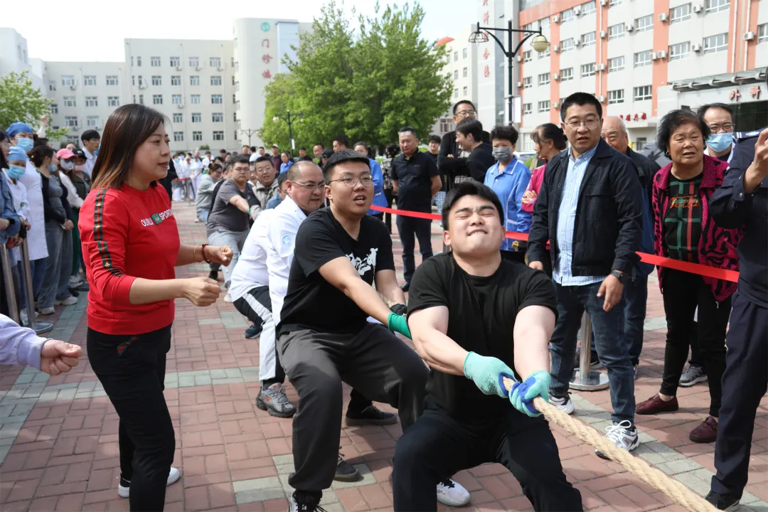 5月9日下午,齐医附属一院举办“凝心聚力 乐享健康”第十二届职工拔河比赛。此次活动以分会为单位,11支队伍231名职工参与比赛,医院副院长艾立辉到场为参赛队员加油助威。活动由工会主席陈珊珊主持。