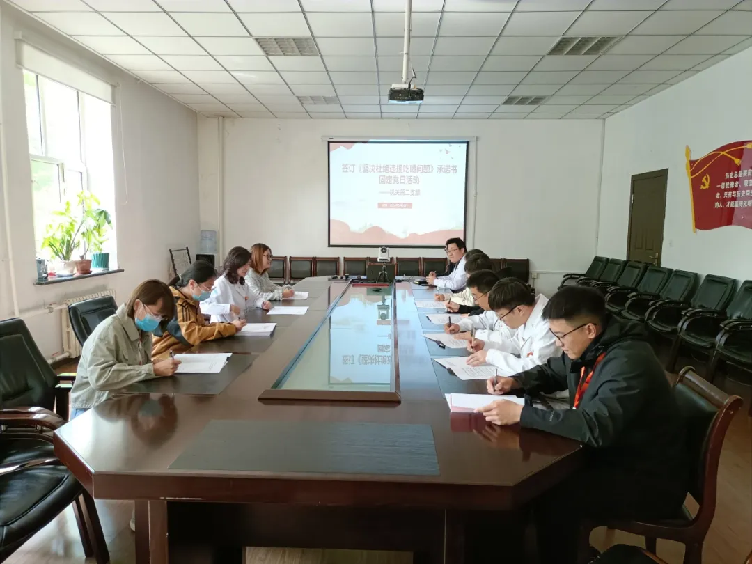 党纪学习教育启动以来,医院党委高度重视,各党支部把党纪学习教育作为当前首要的政治任务抓紧抓实抓好。为认真落实《齐齐哈尔医学院附属第一医院党纪学习教育方案》部署要求,5月,齐医附属一院各党支部围绕集中签订《坚决杜绝违规吃喝问题承诺书》开展固定党日活动。