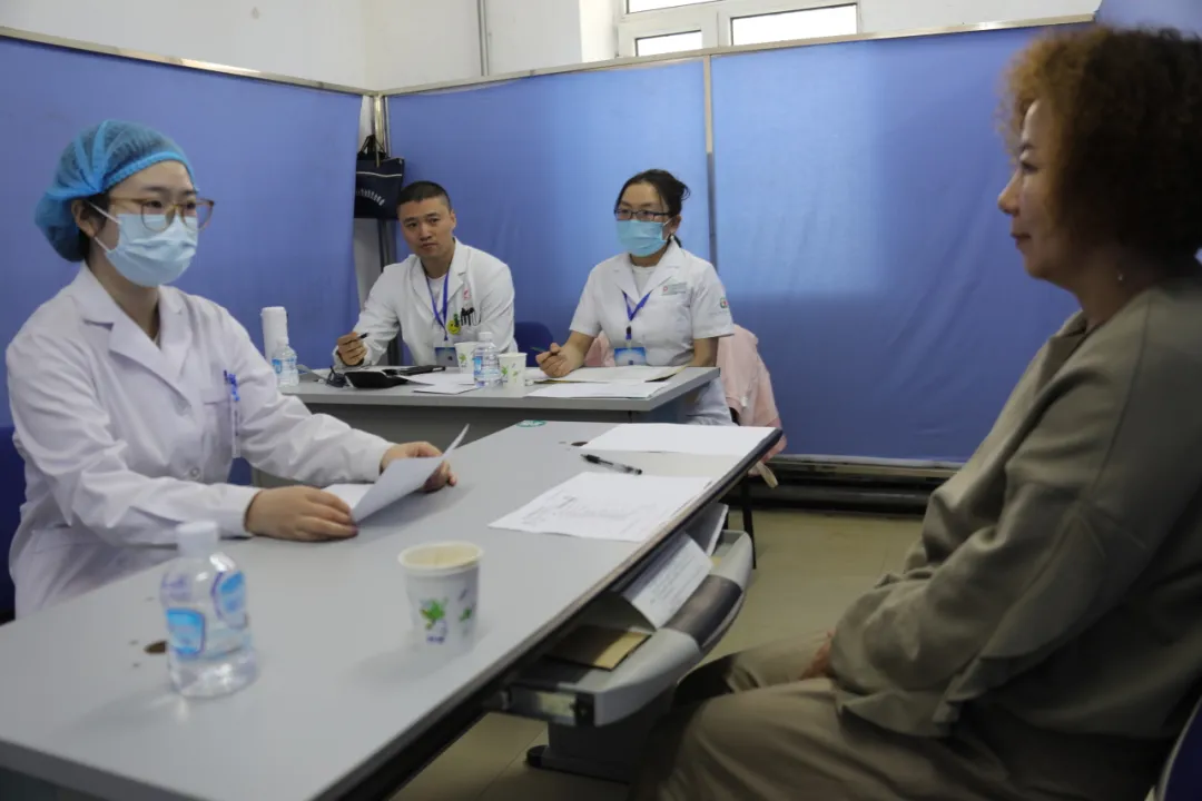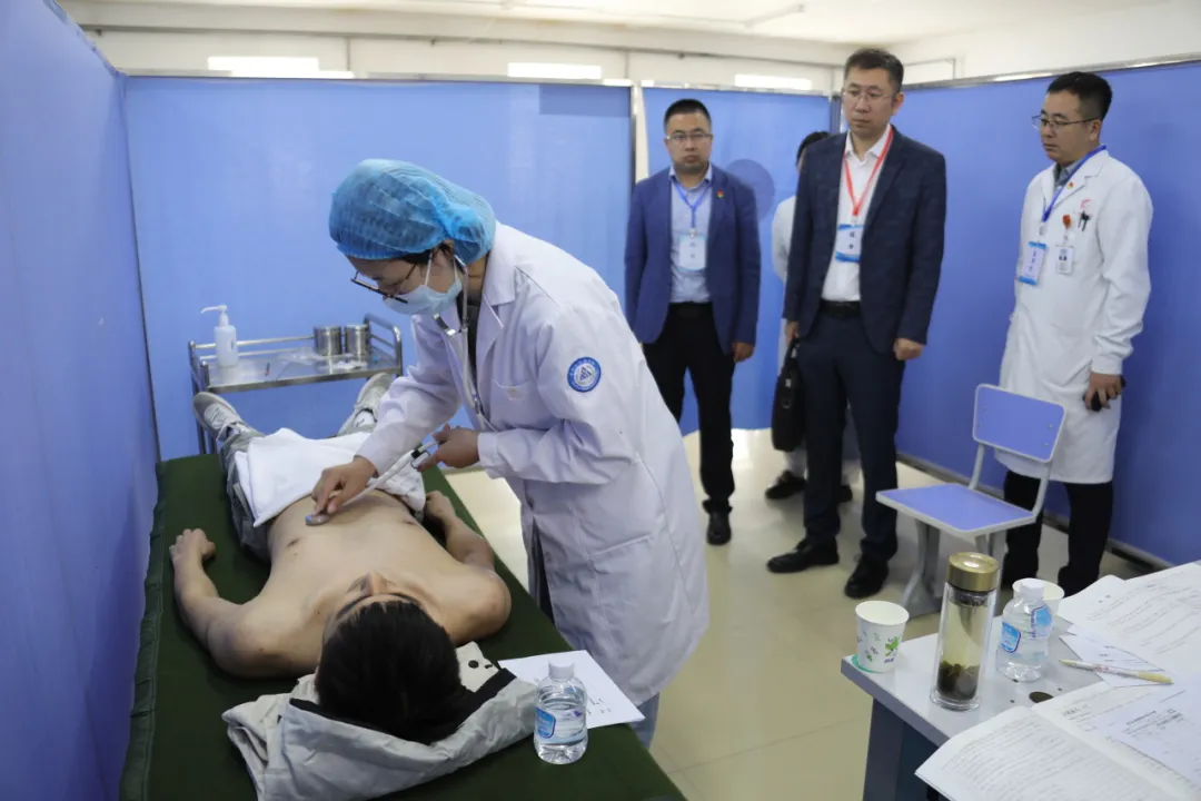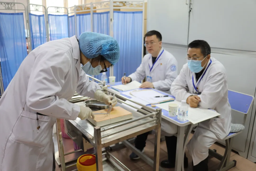 本次考试分为理论考试和技能考试两个部分。5月17日,学生们到齐齐哈尔医学院、齐齐哈尔大学参加机考形式的综合理论考试,主要考查学生的基本理论知识,涉及基础医学、医学人文、预防医学和临床医学知识点。5月18日至19日为实践技能操作考试,医院在东西区临床技能中心共设置5个考组,每个考组6个考站,采取客观结构化临床考试模式,分别考查病史采集、体格检查和临床基本操作能力。其中,第一、二站病史采集中使用“标准化病人(Standardized Patients,SP)”,第三、四站体格检查中使用“标准体检者”,第五站考察学生心肺复苏技能,第六站考察学生包括手术刷手法、静脉穿刺采血等9项基本操作。对学生各项临床技能操作能力、临床综合思维能力、人文关怀和交流沟通能力等进行全方位的考核。